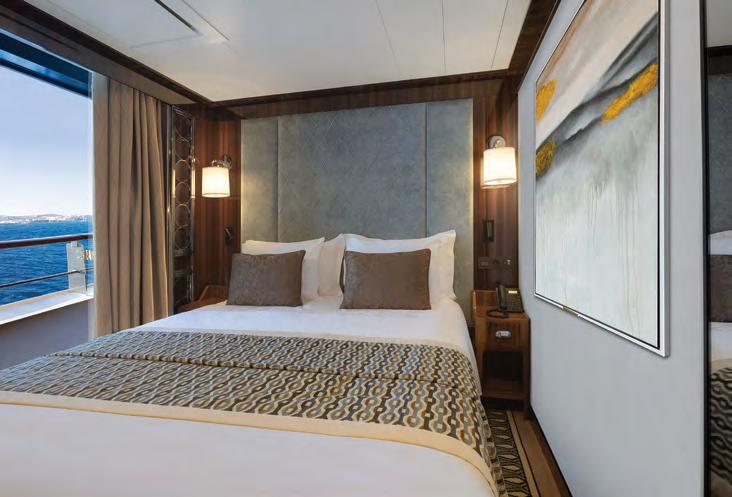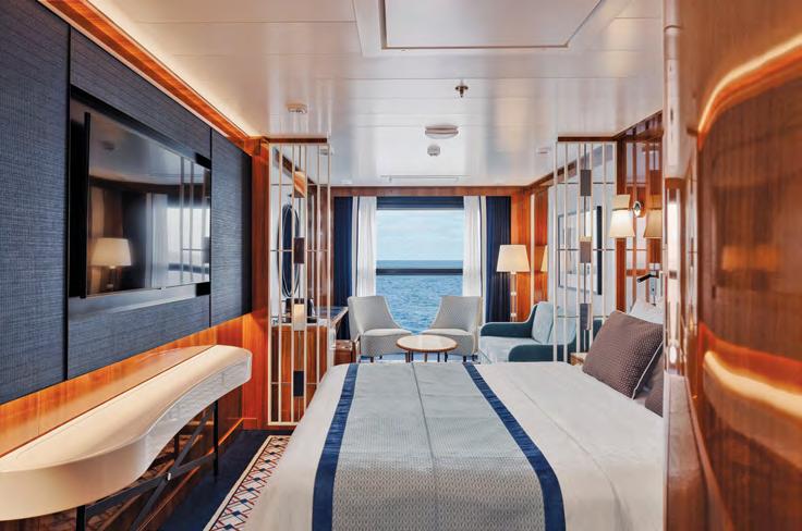 Breathe easy in our most spacious suite. Generous, double floor-to-ceiling glass sliders with ocean views create the perfect balance of indulgent nights aboard after thrilling days ashore.