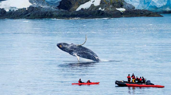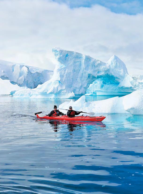 Alongside a kayak master, experienced kayakers have the opportunity to safely cruise through Antarctica’s unspoiled waters, perhaps even coming close to penguins as they dive from ice floes into the sea. Look out for incredible moments, like the possibility of a whale breaching mere feet away from your kayak.