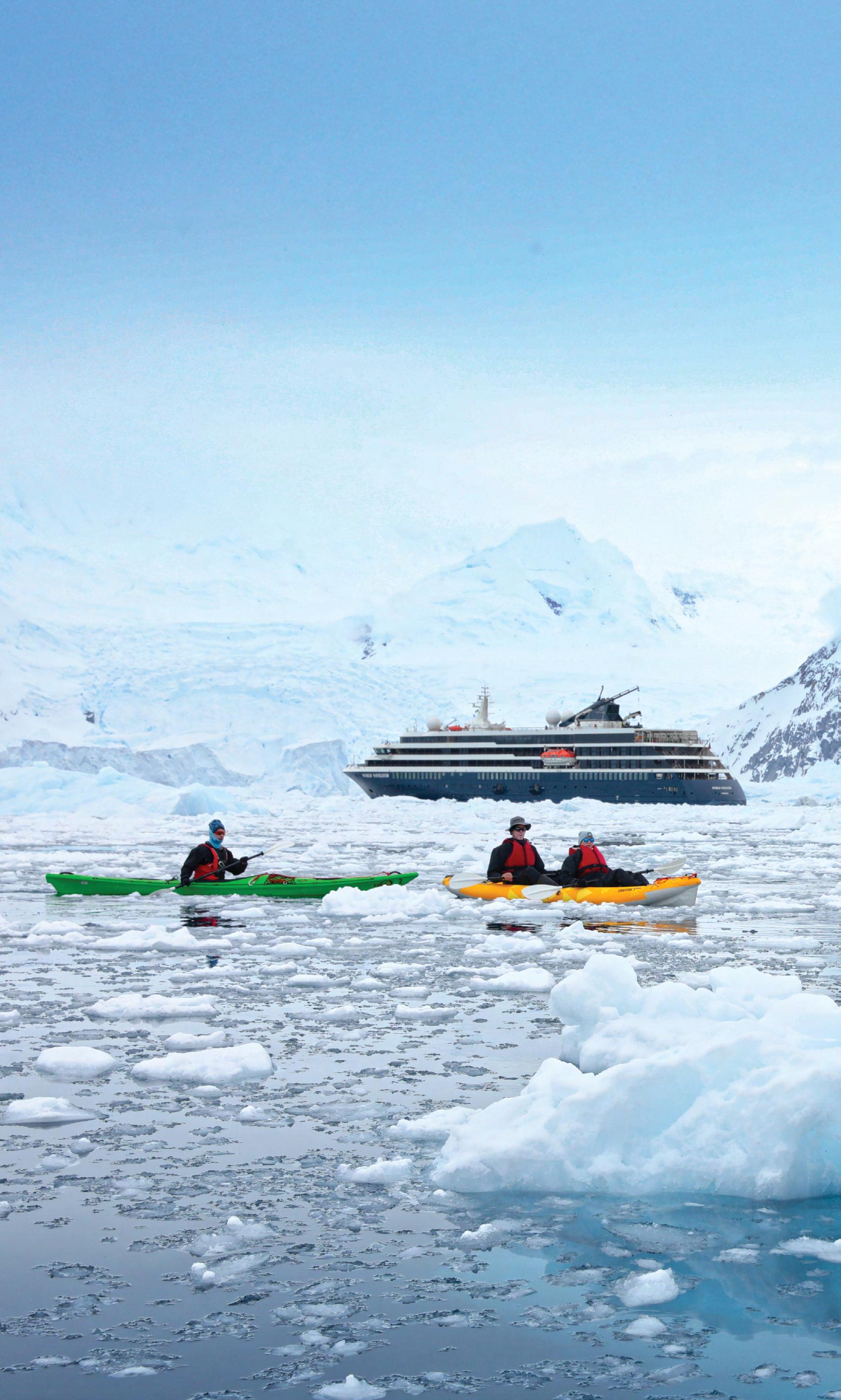 Aboard our state-of-the-art, polar-class yachts, voyages to the Arctic, Antarctica and the southern tip of South America are accompanied by seasoned expedition leaders and a team that may include geologists, zoologists, conservationists and other researchers. These experts share invaluable insights into life in the polar regions during onboard briefings and guide thrilling Zodiac safaris, shore landings and kayaking adventures that reveal the astonishing natural beauty of these glacial wonderlands.