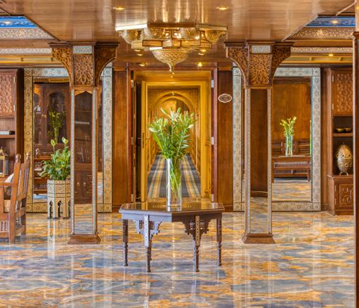 The S.S. Sphinx offers two gourmet dining venues, massage room, swimming pool, 26 gorgeously appointed suites and 16 stunning French balcony staterooms, not to mention, sweeping views of the longest river in the world. This Super Ship offers an immersive onboard experience, with bespoke décor by local artisans and materials sourced regionally -such as fine Egyptian cottons, marble and handcarved blonde wood-to highlight Egyptian craftsmanship while minimising our carbon footprint.