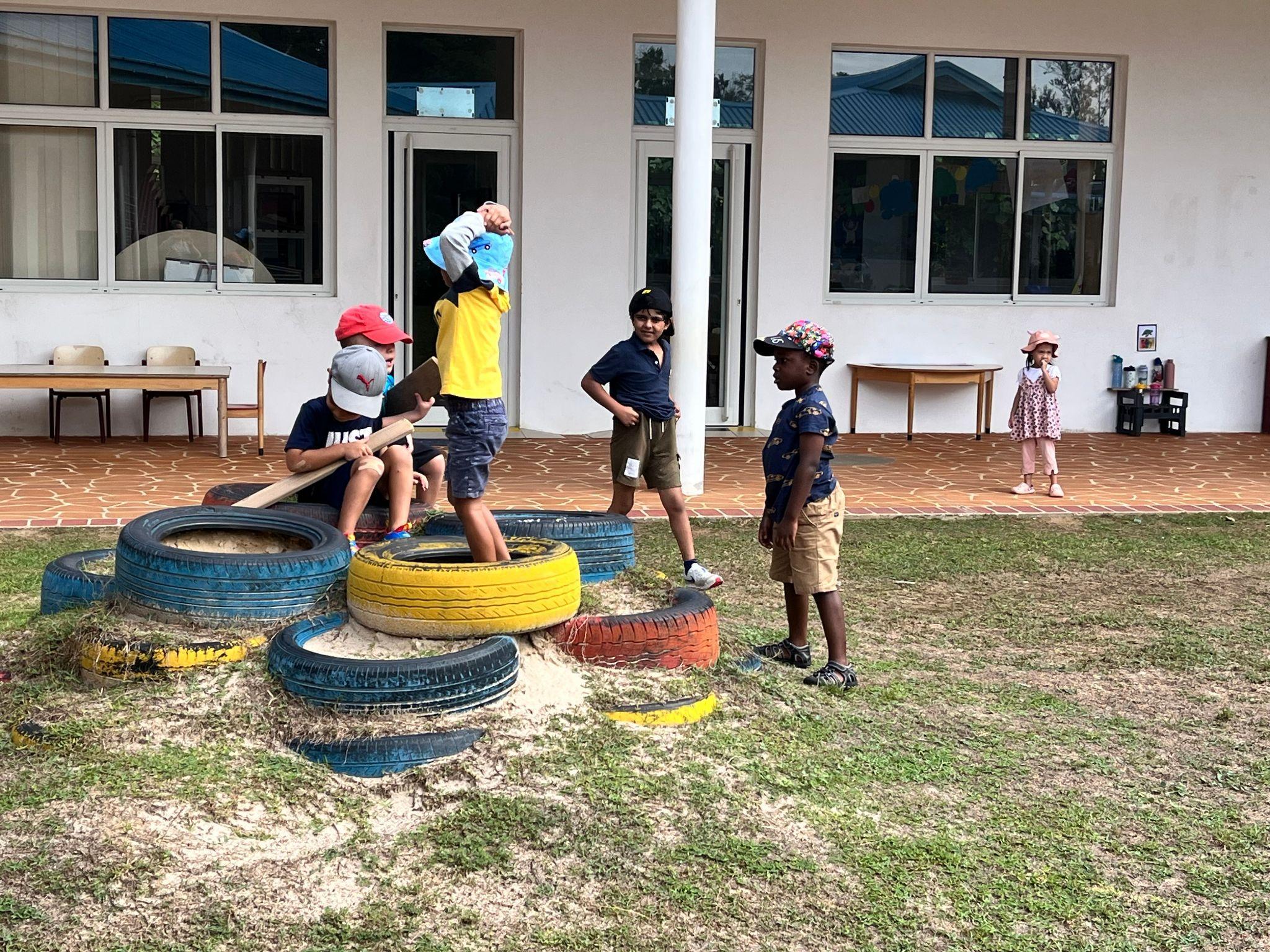 The P1 children have been enquiry monkeys at playtime.They have been exploring all the new activities available to them in Rampayoh. There has been great co-operation with P2 and