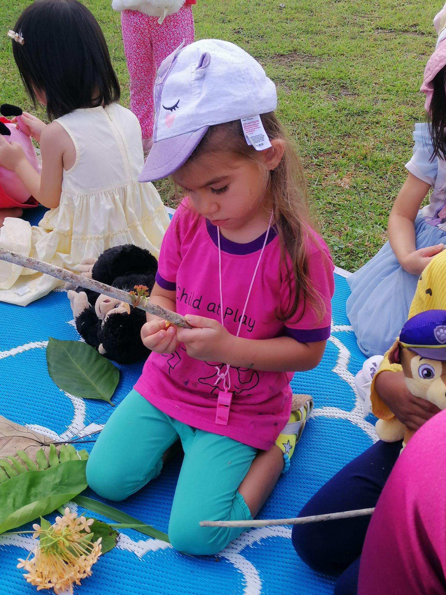 We went on a JungleAdventure for our Entry Point. We set off with a map to find the secret location. The Garden Fairies sent us a message with five challenges including finding lost bears, making a bear from nature, a scavenger hunt and a tug of war against the teachers! What a fun morning…the highlight was the picnic for snack time!
