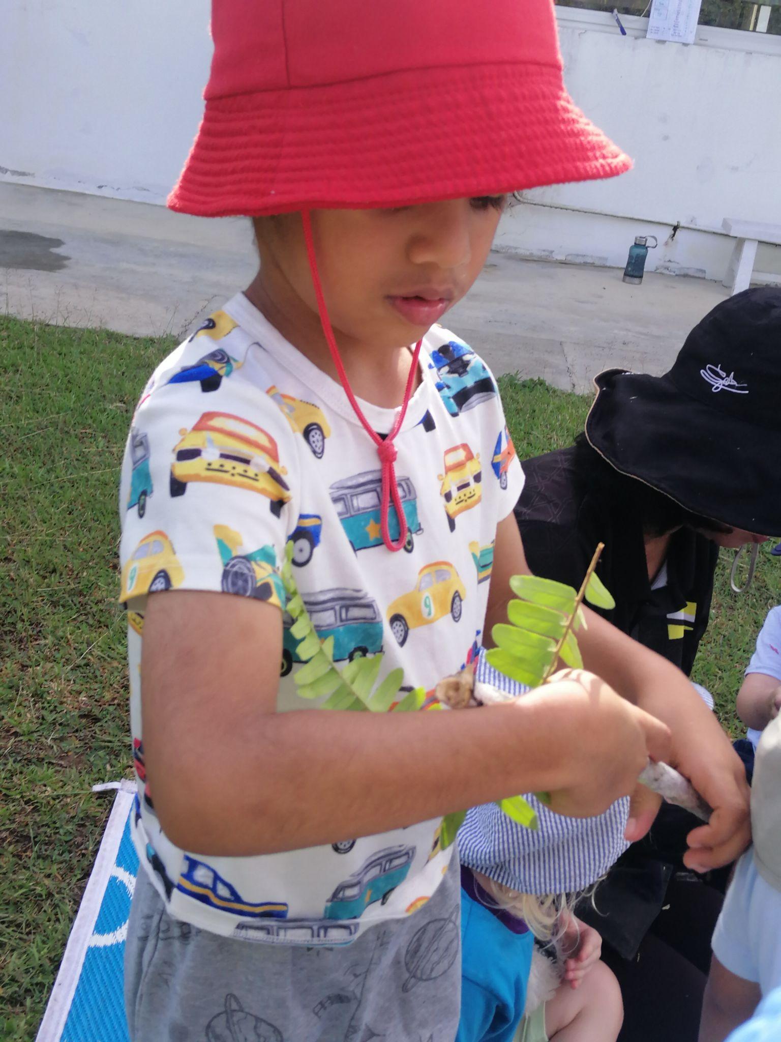 Pre-Nursery children explored a different area of the school and were encouraged to look and listen at the new environment. We asked what could they see and hear? They collected natural items and made a journey stick, tying all the natural items on a stick.