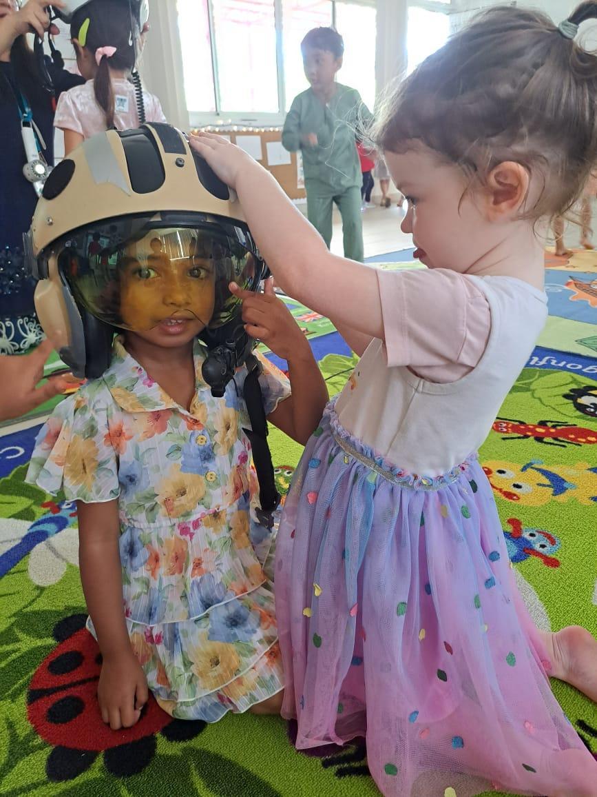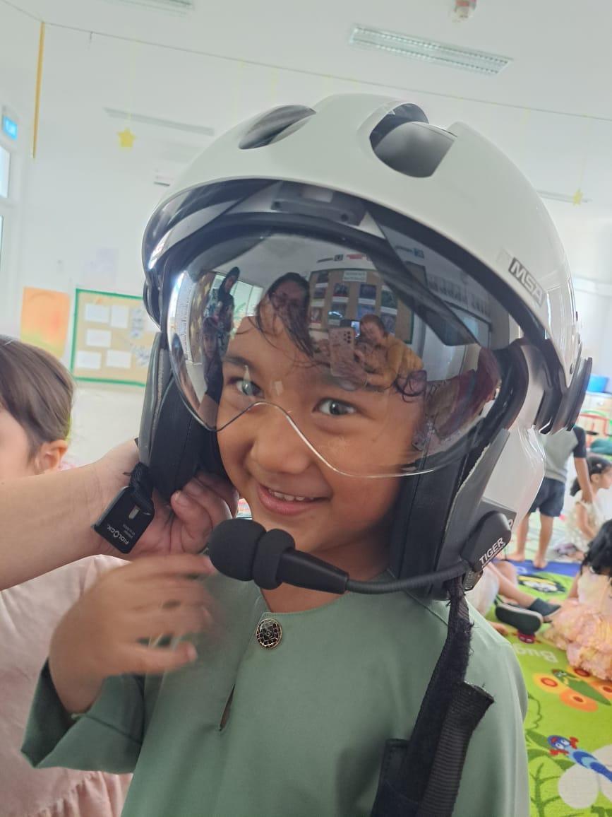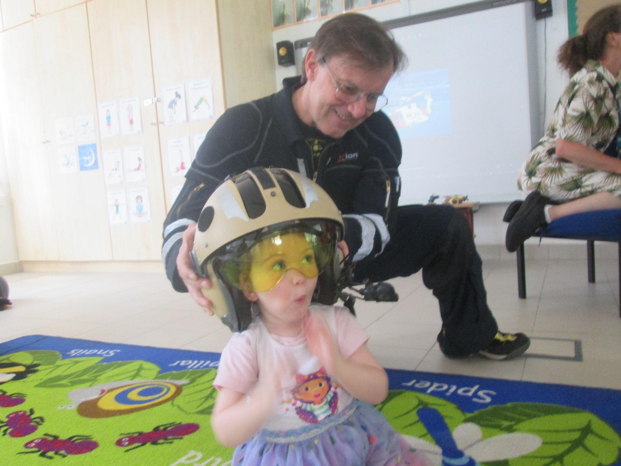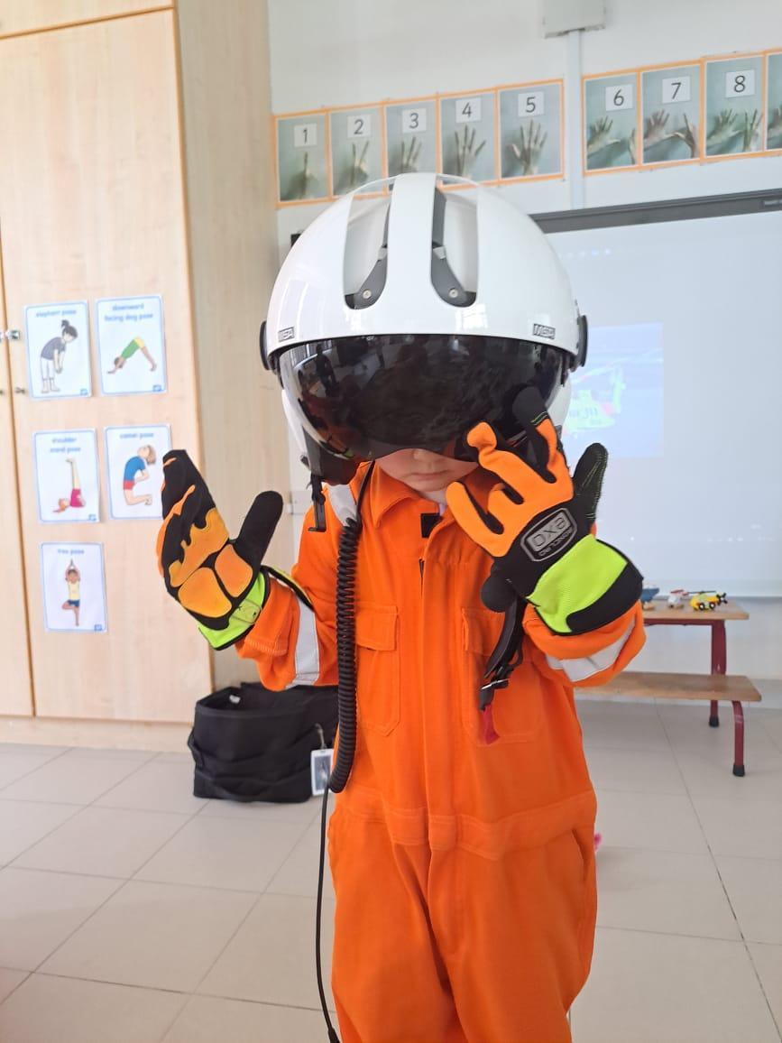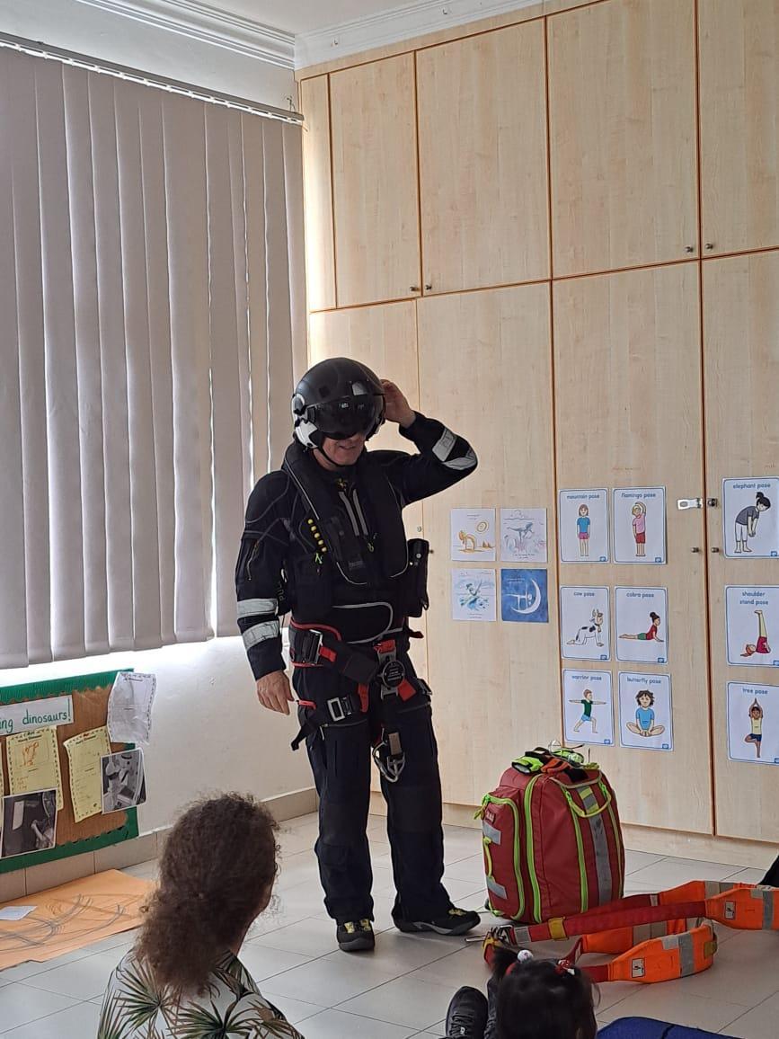 They shared fascinating photos and videos, showing us the specialised equipment they use to save lives. We learned about the different hand signals used to communicate during rescue, as well as what it feels like to be safely secured in a strop. There was also a hands-on opportunity to try on helmets and gloves, giving us a feel for the gear they wear.