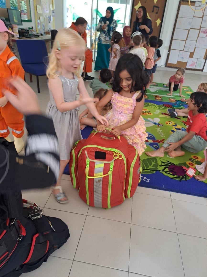 We had an incredible opportunity to learn from real-life superheroes as Captain Gerd and Mr. Chris visited Mendaram to talk about their roles in the Search and Rescue ( SAR ) team. Captain Gerd is a helicopter pilot, Mr. Chris is a winchman paramedic for BSP’s SAR service.