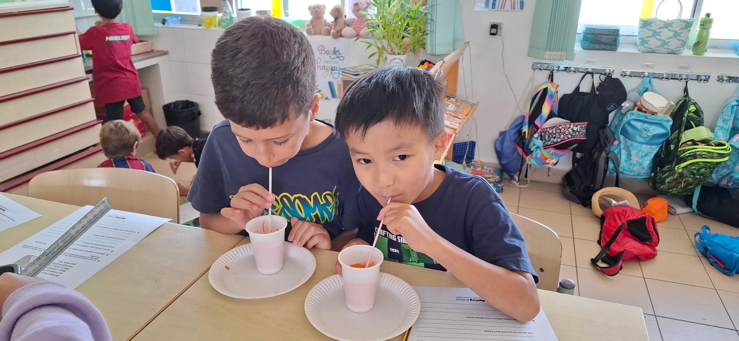 During our lava experiment, the children found out that they could blow only one big bubble in thick lava, but in thin lava, they made lots of bubbles! It was messy, fun, and full of discoveries!