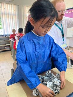 Last week, the students began crafting their tote bags. They layered plastic bags thoughtfully, experimenting with colours and patterns. With Miss Jen’s help, the layers were ironed together to form a stronger, thicker plastic sheet. The next step will be sewing these into stylish, eco-friendly tote bags.