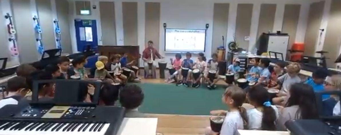 Year 4 taking on African Polyrhythms, Year 5 performing the Batman theme tune and year 6 performing the Lion Sleeps tonight