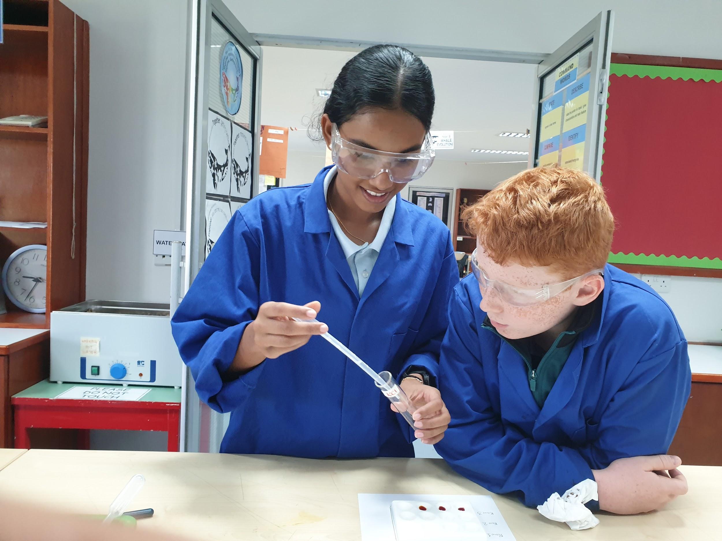 Year 8 chemists discovering patterns in reactivity of the Halogens by carrying out displacement reactions.