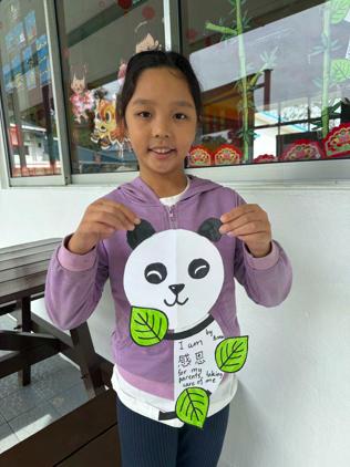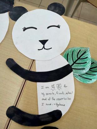 In Mandarin class, they created panda crafts while learning vocabulary related to feelings, and gratitude. They practiced using the phrase 感恩 (gǎn ēn), deepening both their languageskillsandunderstandingofChinese values.