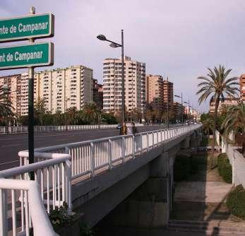 Pont de Campanar: Construït entre 1932 i 1937 unix l’Avinguda Pérez Galdós i l’Avinguda Maestro Rodrigo. Després de la riuada va ser reconstruït l’any 1958, com a anècdota l’any 1973 va ser ampliat sense respectar l’estètica ni característica d’este pont, llevant-li protagonisme i passant a ser un dels ponts que servixen com a circumval·lació de turismes, però realment un dels grans abandonats en els ponts històrics de València.