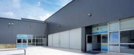 Puertas Doble Hoja NEO de grandes dimensiones, con abertura superior para integrarse en el sistema automático de transporte interior de grandes animales.