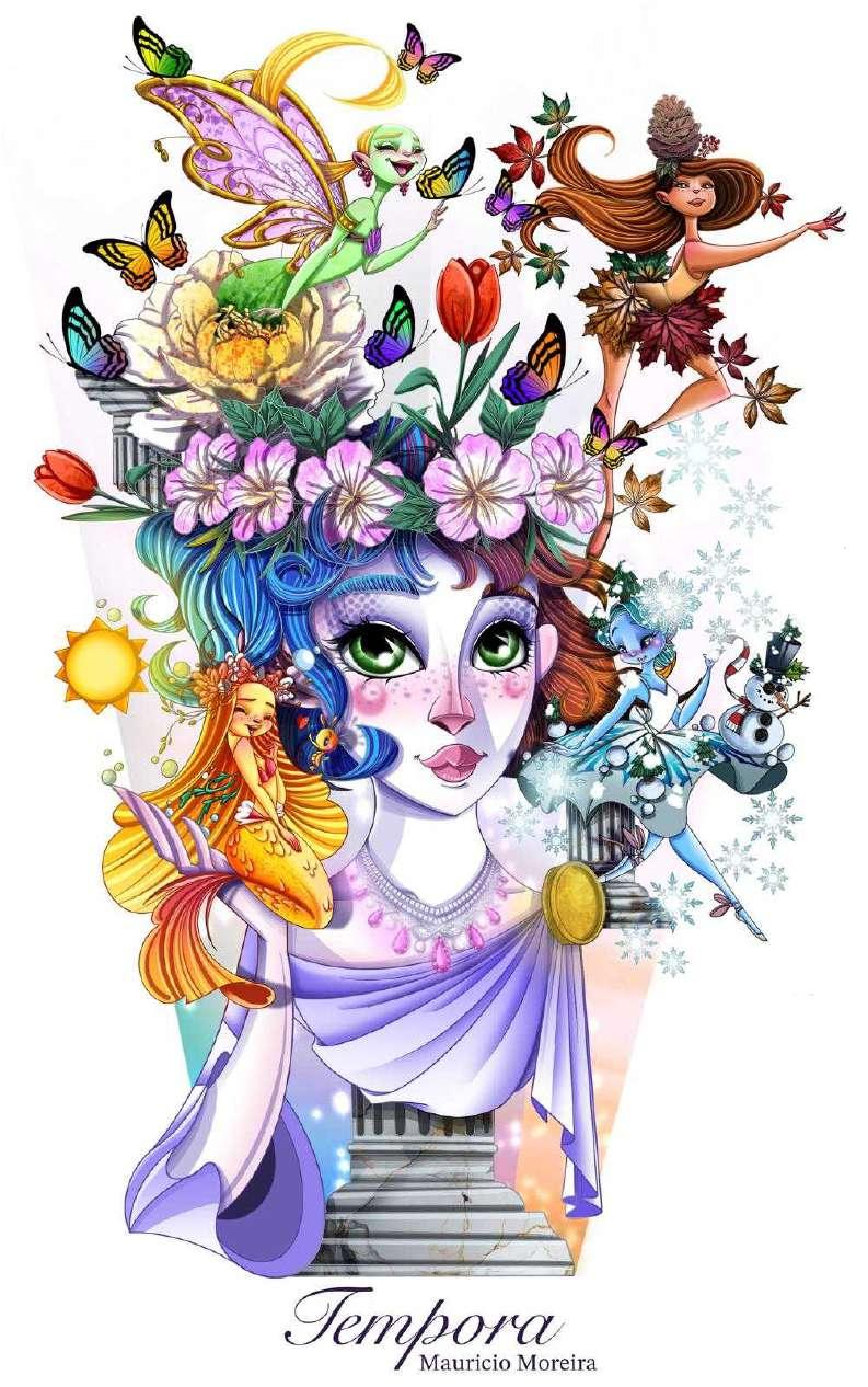 El pas de les estacions marca el transcurs del temps. També que ens fem majors, que el dolent queda arrere i que comencem un nou any, un nou exercici faller. Per a la portada, eixe transcurs, l’hem reflectit basant-nos en les branques d’un arbre, les quals canvien de color, del groc i marró de la tardor, a les flors de primavera, el verd de l’estiu o la nuesa de l’hivern. Els casilicis d’Alzira queden envoltats entre aquestes branques, com un símbol de la resistència del pas del temps, que va canviant tot, que ens va canviant.