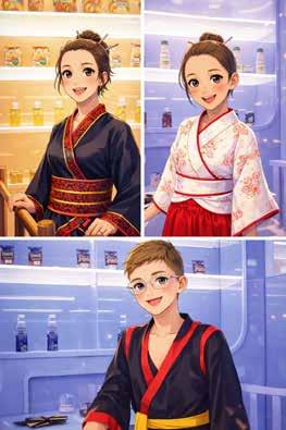 La quarta xiqueta dibuixa en manga, ulls grans que conten històries sense propaganda; ella mateix viu el conte dins d’una cistella, i ensenya que amb imaginació poca cosa falta.