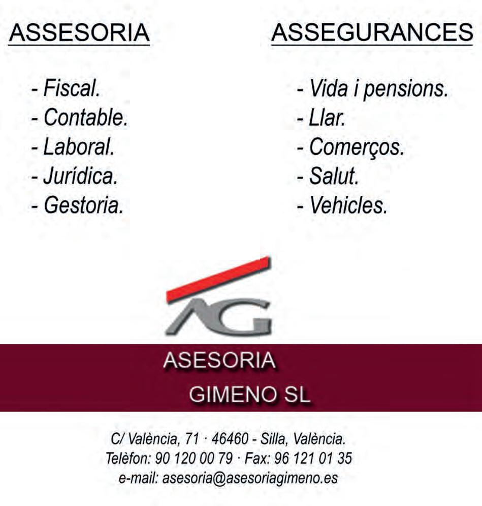 ABIERTO DE MARTES A DOMINGO DE 10:00 A 16:00 & DE 20:00 A 23:00 WWW.LESPARAULES - TAKEAWAY.COM SERVICIO A DOMICILIO COMIDAS PARA LLEVA R MORE THAN DELIVERY FOOD AV. ALICANTE, 64 – SILLA, VALENCIA 96 121 80 23 96 121 85 99 WHATSAPP BUSINESS MESSENGER: 722 645 165 183