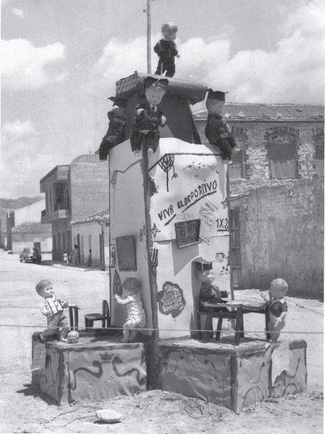 Año 1964, ya somos la comisión infantil de la Falla Fraternidad, ya salimos en la revista con nuestros nombres, la falleras las del año anterior pero ya con sus traje de Alicantinas, de faldita corta azul y blusa negra, era la única falla que vestía así, el resto de las fallas vestían el traje de Valenciana. Estábamos como en una nube, la falla ya la hizo el artista fallero, no recuerdo el lema creo que era “Elda a Castelar”. Ya participamos en los desfiles, nos dieron el segundo premio, también es verdad que solo se plantaron dos fallas infantiles la de la plaza del Ayuntamiento y la nuestra, pero el premio para nosotros fue que éramos falleros. Se pasaron unas fiestas extraordinarias. Luego seguimos dos años o tres más quiero recordar, pero todo lo que empieza acaba, y Manolo no podía estar mucho tiempo sin inventar, y el resto siempre le seguíamos, así que dejamos nuestra huella a la nueva nueva generación y descubrimos que había montañas y un Centro Excursionista. Pero eso es otra historia.