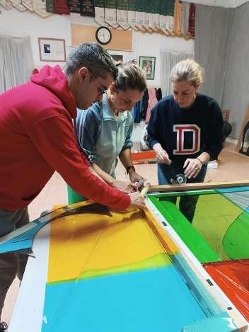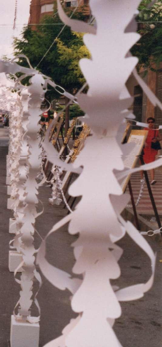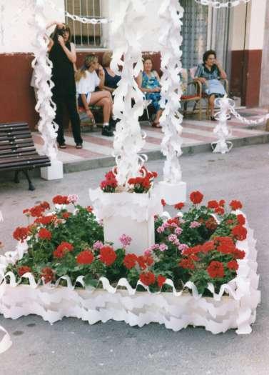 Un grupo de personas, hombres y mujeres, que cuidaban al detalle cada año sus trabajos decorativos, haciendo de cartones, cartulinas, maderas, pinturas... verdaderas obras de arte. 22 familias colaboraban y mantenían aquella calle engalanada.