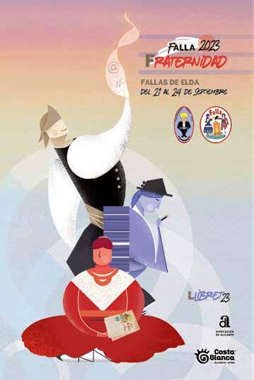 La portada del llibret 2023 de la Falla Fraternidad, está protagonizada por 3 personajes ligados al mundo de las Fallas. Dos falleros y una fallera, cada uno de los cuales interáctua con elementos de la fiesta. Este año hemos querido introducir en nuestra revista, una parte de artículos y estos elementos, hacen mención a ellos. La fallera, ojeando unos de los llibrets del inicio de la fiesta, un fallero, reconciliandose con la pólvora, elemento importantísimo en nuestra fiesta, pero que a veces causa mucho respeto, siendo patente su amor odio. Y un esbelto fallero, fusionando historia de la fiesta, con la modernidad de las redes sociales y esa visión más actual de la fiesta, con la llama, el arroba y la almohadilla, tan común en redes.