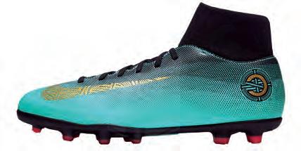 Este modelo está inspirado en la selección de portugal donde CR7 presume la capitanía del equipo. Diseñada en color azul verdoso con detalles en color rojo, colores de la bandera del país. Además incorpora un nuevo logo de CR7 en el lateral.