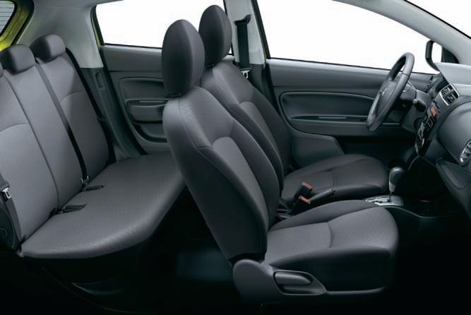 Entre otras funcionalidades del Mirage se incluyen retrovisores, ventanas y cierres eléctricos. En su eficiente distribución interior, este hatchback cuenta con consola de piso con portavasos. Sus asientos traseros con totalmente abatibles, lo que permite una mayor espacio al momento que necesitan utilizar el área de almacenamiento o carga. Con un fresco y sofisticado estilo, el Mirage es atractivo a la vista en una amplia gama de colores disponibles: Azul, Rojo, Blanco, Plateado, Gris, Negro y Verde. Este último de la nueva gama de colores de Mitsubishi.