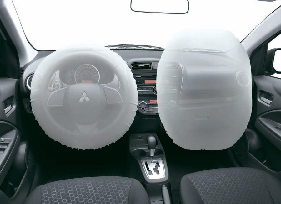 A fin de aumentar la seguridad del conductor y del acompañante, el Mirage incorpora 2 bolsas de aire en sus tres versiones. El modelo cuenta también con: