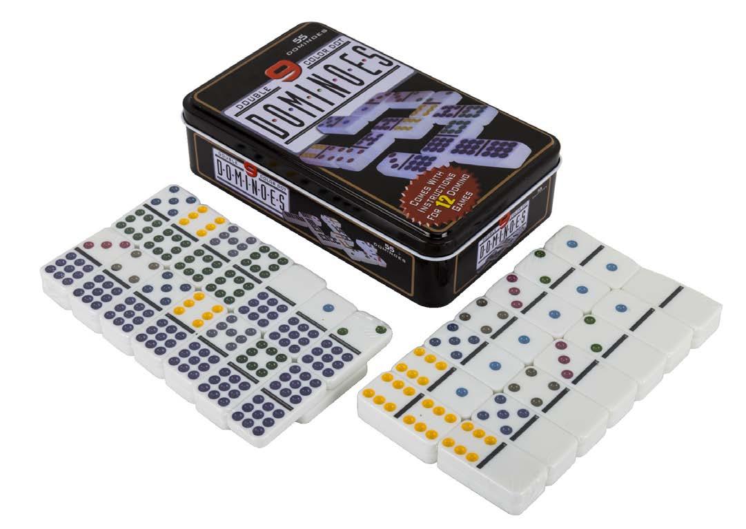 DOMINÓ DOBLE de 9 COLORES con estuche metálico