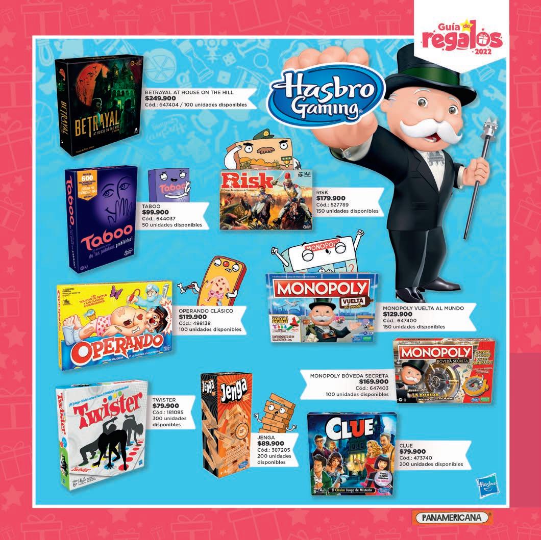 7 JUEGOS Y JUGUETES Inventario sujeto a disponibilidad en los puntos de venta / Consulta las referencias disponibles, precios y sus características en cada punto de venta / Las fotografías no representan el tamaño real de los productos / Los elementos de ambientación no forman parte de los productos / Máximo 2 unidades de productos de tecnología y productos en promoción del mismo código y/o referencia por cliente, por cédula, por factura, por tienda, por evento, por dirección de envío y ventas a crédito / Los precios sin oferta publicados en esta página son precios de lista / Ofertas no acumulables con otras promociones * El descuento aplica para juguetería importada por Panamericana, marcada con el sticker verde y relacionada en la lista física que se encuentra disponible en cada punto de venta Precio con dto.: $59.900 c/u PRECIO NORMAL: $119.800 c/u Cód.: 640271 / 200 unidades totales disponibles Precio con dto.: $79.900 PRECIO NORMAL: $159.800 Cód.: 640416 / 200 unidades disponibles Precio con dto.: $74.900 c/u PRECIO NORMAL: $149.800 c/u Códs.: 640222, 640225, 640227, 640228 y 640230 1.000 unidades totales disponibles 12 sonidos infantiles TAMBOR DIDÁCTICO, SURTIDO TAPETE INFANTIL PARA BEBÉ CON ESPEJO Y SONAJEROS PELUCHES EL MEJOR COMPAÑERO DEL BEBÉ Ofertas válidas del 6 al 24 de diciembre de 2022 Precio con dto.: $94.900 PRECIO NORMAL: $189.800 Cód.: 640385 / 150 unidades disponibles TIMÓN INFANTIL DIDÁCTICO