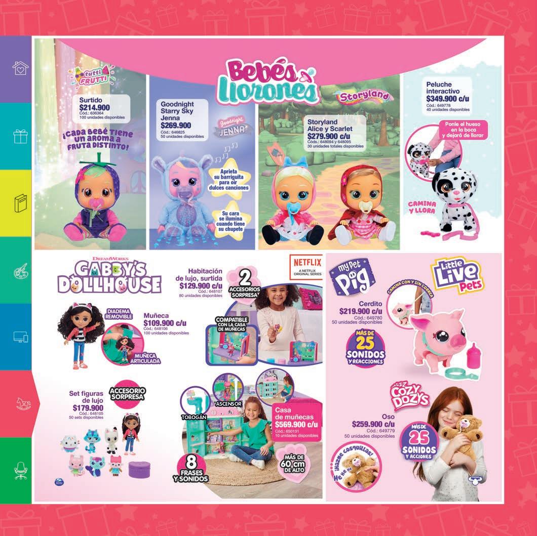15 Inventario sujeto a disponibilidad en los puntos de venta / Consulta las referencias disponibles, precios y sus características en cada punto de venta / Las fotografías no representan el tamaño real de los productos / Los elementos de ambientación no forman parte de los productos / Máximo 2 unidades de productos de tecnología y productos en promoción del mismo código y/o referencia por cliente, por cédula, por factura, por tienda, por evento, por dirección de envío y ventas a crédito / Los precios sin oferta publicados en esta página son precios de lista / Ofertas no acumulables con otras promociones JUEGOS Y JUGUETES