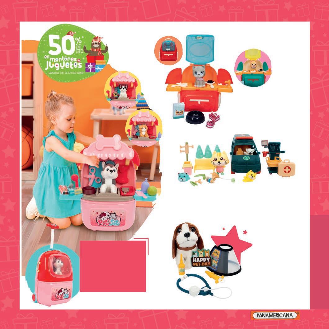 3 JUEGOS Y JUGUETES Inventario sujeto a disponibilidad en los puntos de venta / Consulta las referencias disponibles, precios y sus características en cada punto de venta / Las fotografías no representan el tamaño real de los productos / Los elementos de ambientación no forman parte de los productos / Máximo 2 unidades de productos de tecnología y productos en promoción del mismo código y/o referencia por cliente, por cédula, por factura, por tienda, por evento, por dirección de envío y ventas a crédito / Los precios sin oferta publicados en esta página son precios de lista / Ofertas no acumulables con otras promociones * El descuento aplica para juguetería importada por Panamericana, marcada con el sticker verde y relacionada en la lista física que se encuentra disponible en cada punto de venta Precio con dto.: $49.900 c/u PRECIO NORMAL: $99.800 c/u Códs.: 634906 y 634907 180 unidades totales disponibles Precio con dto.: $84.900 PRECIO NORMAL: $169.800 Cód.: 640233 / 200 sets disponibles Precio con dto.: $49.900 PRECIO NORMAL: $99.800 Cód.: 640322 / 180 sets disponibles BOLSO INFANTIL 2 EN 1 CON MASCOTA Y ACCESORIOS SET DE VETERINARIA CON PERRO, COLLAR ISABELINO Y ACCESORIOS SET DE MÉDICO VETERINARIO CON GATOS Y ACCESORIOS, SURTIDO Ofertas válidas del 6 al 24 de diciembre de 2022 Diseños surtidos Diseños surtidos MALETA TRANSPORTADORA CON MASCOTA Y ACCESORIOS Precio con dto.: $129.900 c/u PRECIO NORMAL: $259.800 c/u Códs.: 640238, 640239 y 640241 300 unidades totales disponibles
