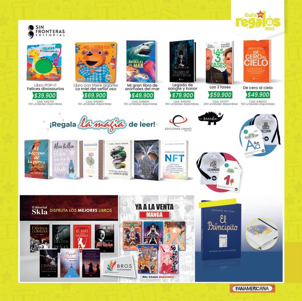 39 Inventario sujeto a disponibilidad en los puntos de venta / Consulta las referencias disponibles, precios y sus características en cada punto de venta / Las fotografías no representan el tamaño real de los productos / Los elementos de ambientación no forman parte de los productos / Máximo 2 unidades de productos de tecnología y productos en promoción del mismo código y/o referencia por cliente, por cédula, por factura, por tienda, por evento, por dirección de envío y ventas a crédito / Los precios sin oferta publicados en esta página son precios de lista / Ofertas no acumulables con otras promociones LIBROS $40.000 c/u Cód.: 608710 80 unidades disponibles $35.000 c/u Cód.: 608725 60 unidades disponibles FLASHCARDS: ABECEDARIO FLASHCARDS: NÚMEROS Precio con dto.: $44.000 c/u PRECIO NORMAL: $55.000 c/u Cód.: 487826 / 200 unidades disponibles % DE DTO. EN Oferta válida del 5 de noviembre al 31 de diciembre de 2022 EL PRINCIPITO EDICIÓN DE LUJO Cód.: 650185 Cód.: 650188 Cód.: 650190 Cód.: 650187 1.000 unidades totales disponibles Cód.: 650191 Cód.: 650189 Un libro es un regalo que abrirás una y otra vez