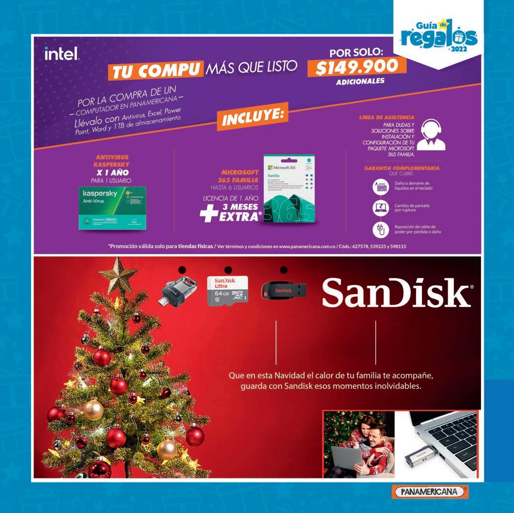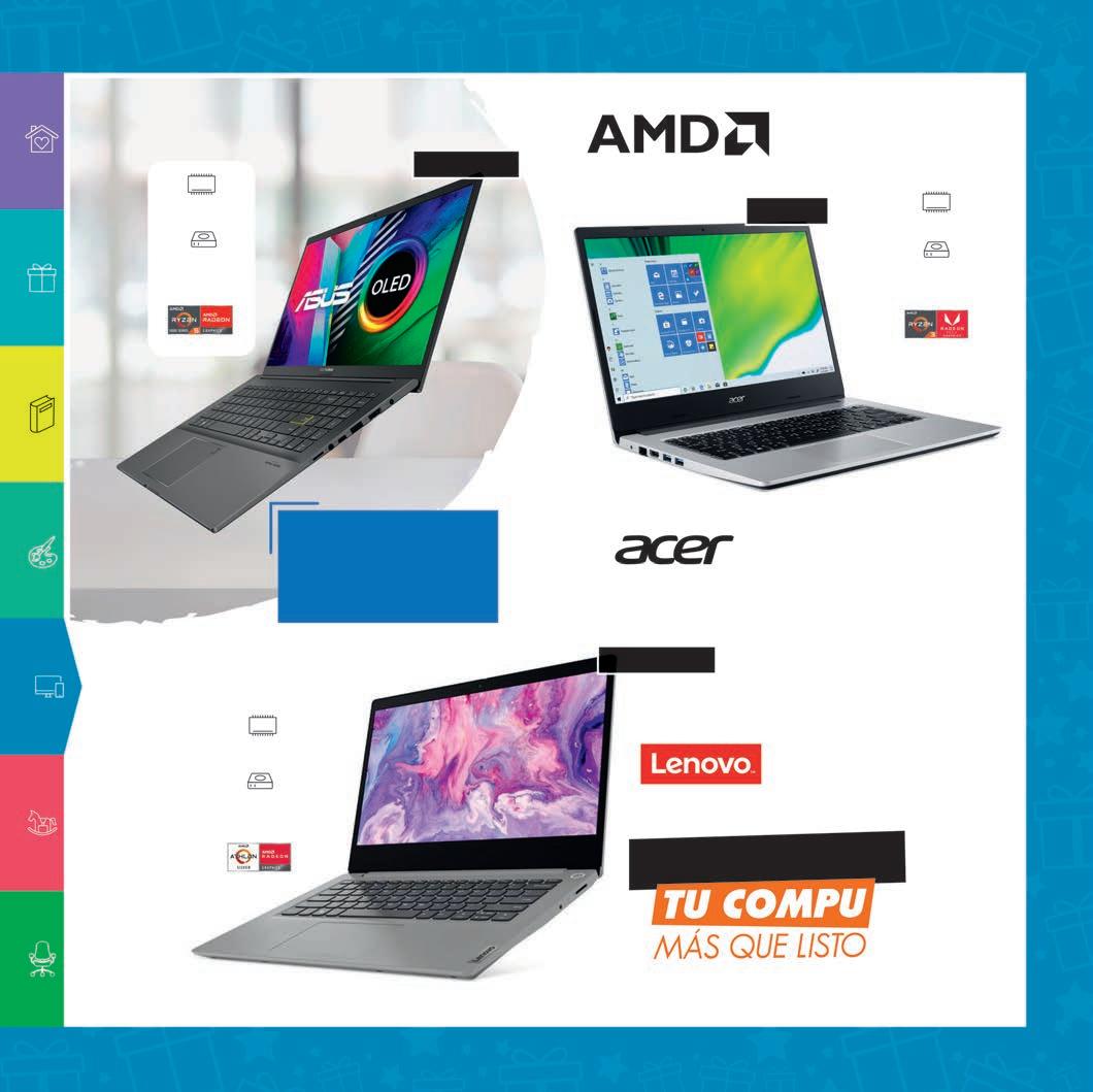 58 WWW.PANAMERICANA.COM.CO Inventario sujeto a disponibilidad en los puntos de venta / Consulta las referencias disponibles, precios y sus características en cada punto de venta / Las fotografías no representan el tamaño real de los productos / Los elementos de ambientación no forman parte de los productos / Máximo 2 unidades de productos de tecnología y productos en promoción del mismo código y/o referencia por cliente, por cédula, por factura, por tienda, por evento, por dirección de envío y ventas a crédito / Los precios sin oferta publicados en esta página son precios de lista / Ofertas no acumulables con otras promociones PORTÁTIL ASPIRE A314-22-R286 Precio especial: $1.299.000 PRECIO NORMAL: $2.299.000 Cód.: 640929 / 50 unidades disponibles PORTÁTIL IDEAPAD 3 14ADA05 Precio especial: $1.299.900 PRECIO NORMAL: $1.799.000 Cód.: 609954 / 50 unidades disponibles POR LA COMPRA DE ESTE PORTÁTIL LLEVA SIN COSTO ADICIONAL Memoria RAM 8 GB Almacenamiento 256 GB SSD Procesador: AMD RYZEN™ 3 3250U Memoria RAM 8 GB Almacenamiento Procesador: AMD RYZEN 5™ 5500U 15.6” FHD PORTÁTIL VIVOBOOK M513UA Precio especial: $2.499.000 PRECIO NORMAL: $4.219.000 Cód.: 636389/ 50 unidades disponibles Memoria RAM 8 GB Almacenamiento 256 GB SSD Procesador: AMD Athlon silver 3050U 14” HD TN Ofertas válidas del 6 al 24 de diciembre de 2022 512 GB SSD 14” HD
