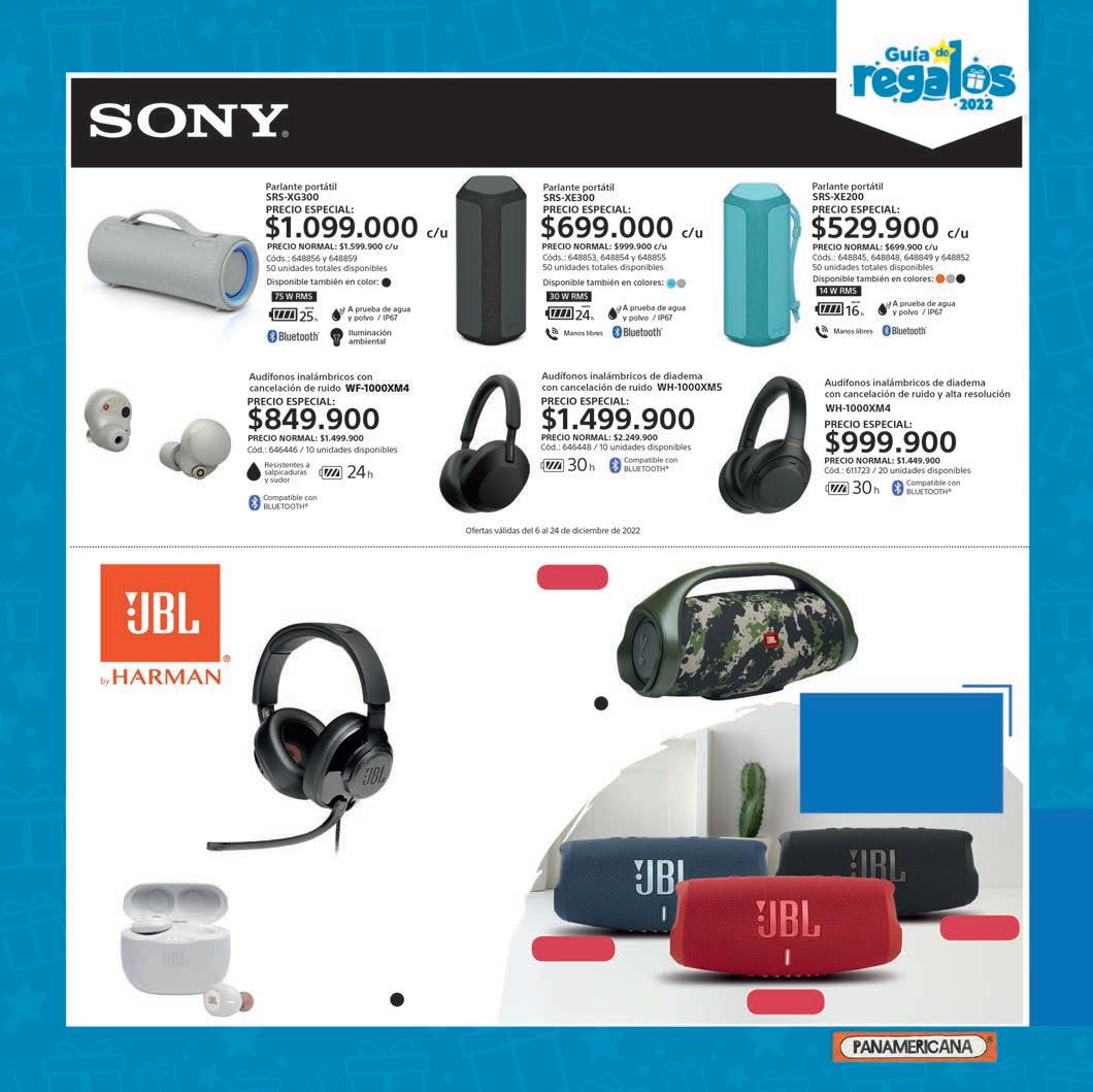 62 WWW.PANAMERICANA.COM.CO Inventario sujeto a disponibilidad en los puntos de venta / Consulta las referencias disponibles, precios y sus características en cada punto de venta / Las fotografías no representan el tamaño real de los productos / Los elementos de ambientación no forman parte de los productos / Máximo 2 unidades de productos de tecnología y productos en promoción del mismo código y/o referencia por cliente, por cédula, por factura, por tienda, por evento, por dirección de envío y ventas a crédito / Los precios sin oferta publicados en esta página son precios de lista / Ofertas no acumulables con otras promociones AUDÍFONOS DE CONDUCCIÓN ÓSEA EB-1000-C AUDÍFONOS INALÁMBRICOS TWS-50 MORRAL PARA PORTÁTIL DE 15” TECHBAG L-1020 $69.900 Cód.: 648791 / 100 unidades disponibles $69.900 c/u Códs.: 648792 y 648793 100 unidades totales disponibles $74.900 Cód.: 644506 / 100 unidades disponibles PARLANTE BLUETOOTH DE 2 X 5 W RMS SP-700 Precio especial: $56.900 PRECIO NORMAL: $69.900 Cód.: 644505 / 100 unidades disponibles • Manos libres • Lector de tarjeta SD y USB (no incluidas) • Tiempo de conversación ≥ 3 horas al 65% de volumen • El estuche funciona como cargador • Nivel de impermeabilidad IPX4 (no es impermeable) • Botón multifuncional • Tiempo de trabajo: 3 a 4 horas Ofertas válidas del 6 al 24 de diciembre de 2022 Disponible también en color: Precio especial: $499.900 PRECIO NORMAL: $589.900 Cód.: 640044 / 50 unidades disponibles Oferta válida del 6 al 24 de diciembre de 2022