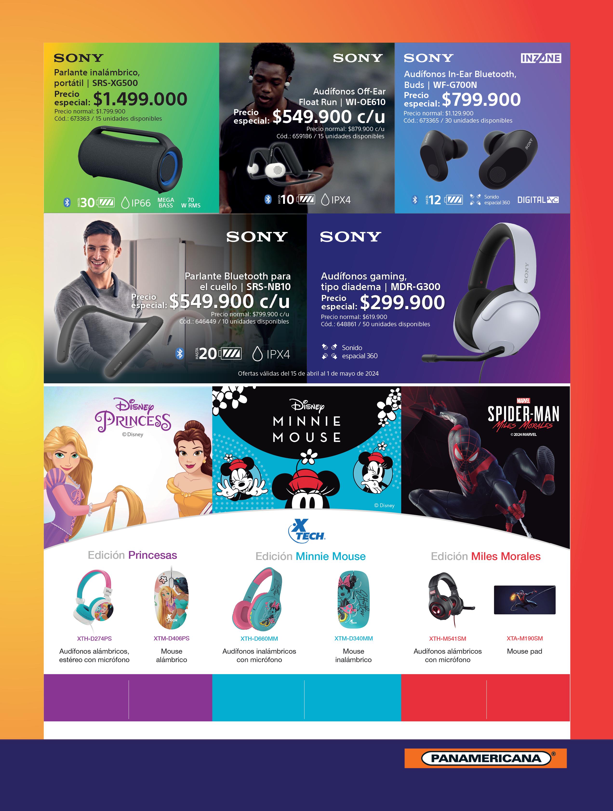 ventas a crédito / Los precios sin oferta publicados en esta página son precios de lista / Ofertas no acumulables con otras promociones 9 WWW. PANAMERICANA .COM.CO $299.900 C/U Códs.: 663536, 663534 y 663535 / 100 unidades totales disponibles Ofertas válidas del 15 de abril al 1 de mayo de 2024 MOUSE ALáMBRICO GAMING, MS1031 PRECIO ESPECIAL: $39.900 PRECIO NORMAL: $79.900 Cód.: 646957 50 unidades disponibles BASE REFRIGERANTE Para PORTáTIL GAMING, HV-F2035 PRECIO ESPECIAL: $49.900 PRECIO NORMAL: $59.900 Cód.: 602184 50 unidades disponibles MOUSE PAD GAMING CON LUZ, MP901, 30 CM X 26 CM PRECIO ESPECIAL: $49.900 PRECIO NORMAL: $59.900 Cód.: 607205 50 unidades disponibles TECLADO ALÁMBRICO GAMING CON LUZ, KB513L-SP PRECIO ESPECIAL: $79.900 PRECIO NORMAL: $99.900 Cód.: 646947 50 unidades disponibles SOPORTE PARA AUDÍFONOS, CON PUERTO USB Y LUZ PRECIO ESPECIAL: $79.900 PRECIO NORMAL: $89.900 Cód.: 607199 50 unidades disponibles