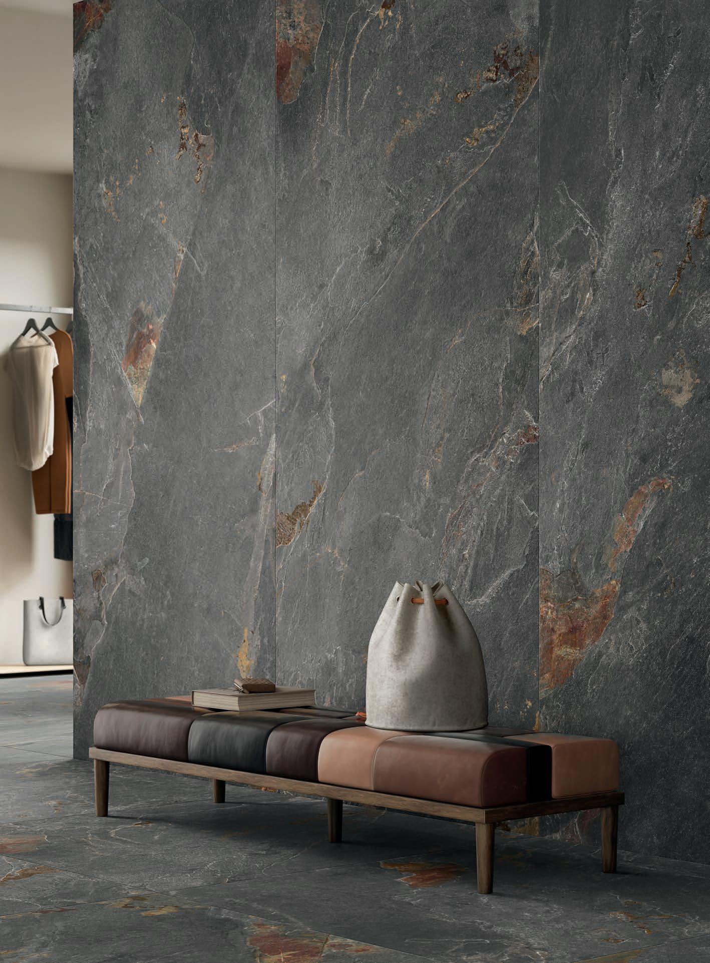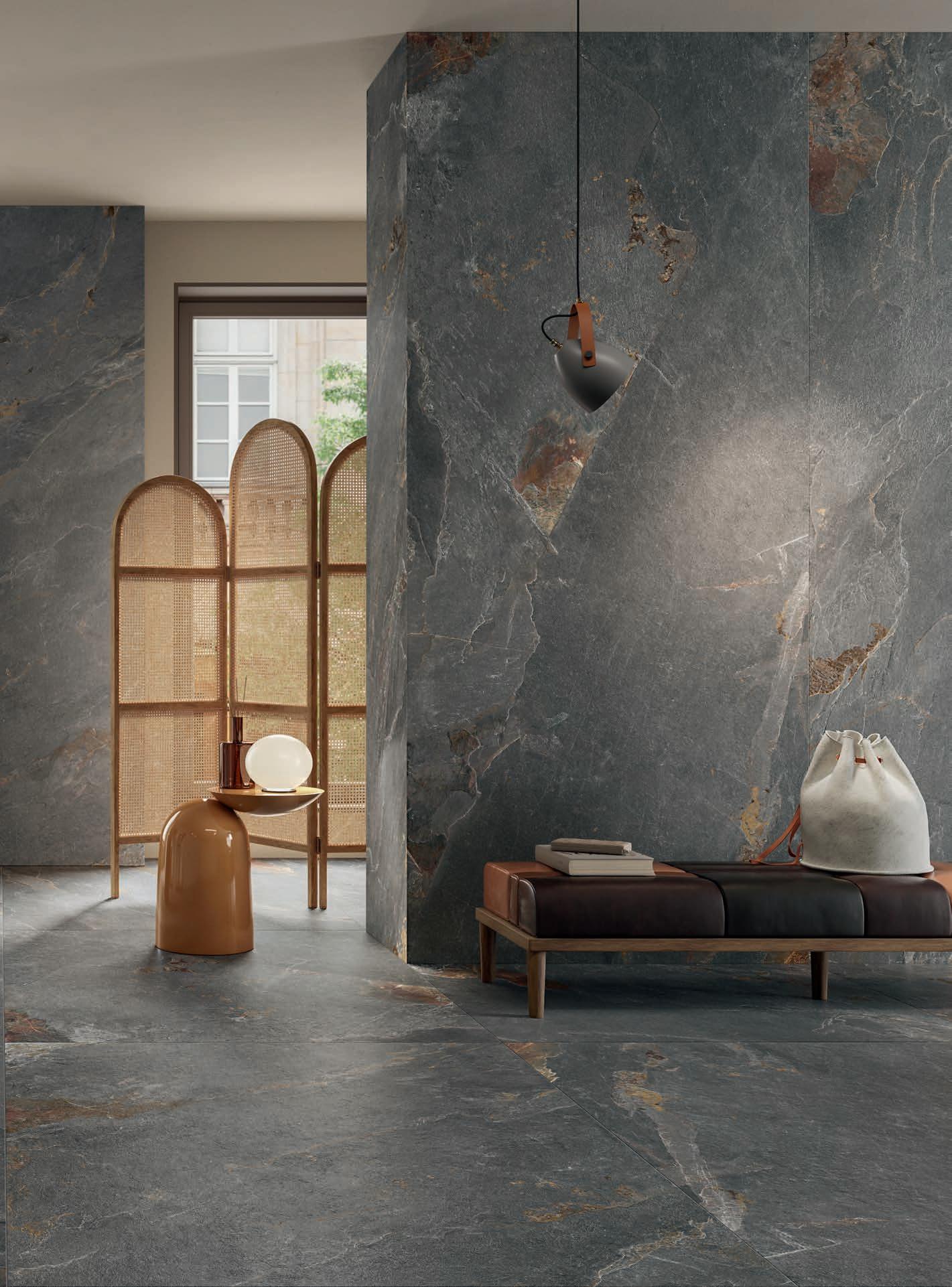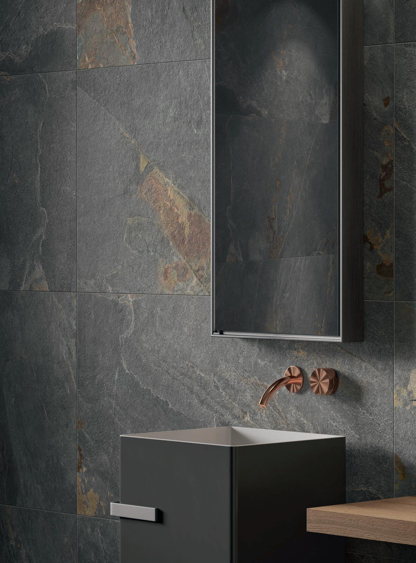 Abbiamo scelto Stone Trace perché interpreta con assoluta fedeltà il fascino naturale e la forza espressiva dell’ardesia in tutte le sue sfumature. Esattamente come noi queste superfici sono mutevoli, con una personalità forte ma discreta, dialogano con gli arredi della nostra casa in perfetta armonia, sono grandi e sempre diverse, come la nostra immaginazione.