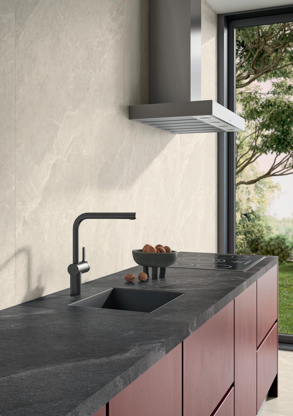Grande, ottimale, versatile: la dimensione di 120x278 cm delle lastre Stone Trace consente nuove soluzioni per la progettazione. Con sorprendente forza estetica, unita alle qualità di durevolezza e resistenza superiori ad ogni altro materiale, Stone Trace riveste l’interno e l’esterno della nostra casa, per un risultato potente e avvolgente come un nido in cui accoccolarsi. Un senso di libertà e naturalezza pervade i nostri spazi, la veridicità di grafiche e finiture fedeli alla pietra di riferimento ci rassicura, così come l’accostamento con altri materiali rinsalda il nostro amore per la natura e per tutto ciò che è vitale.