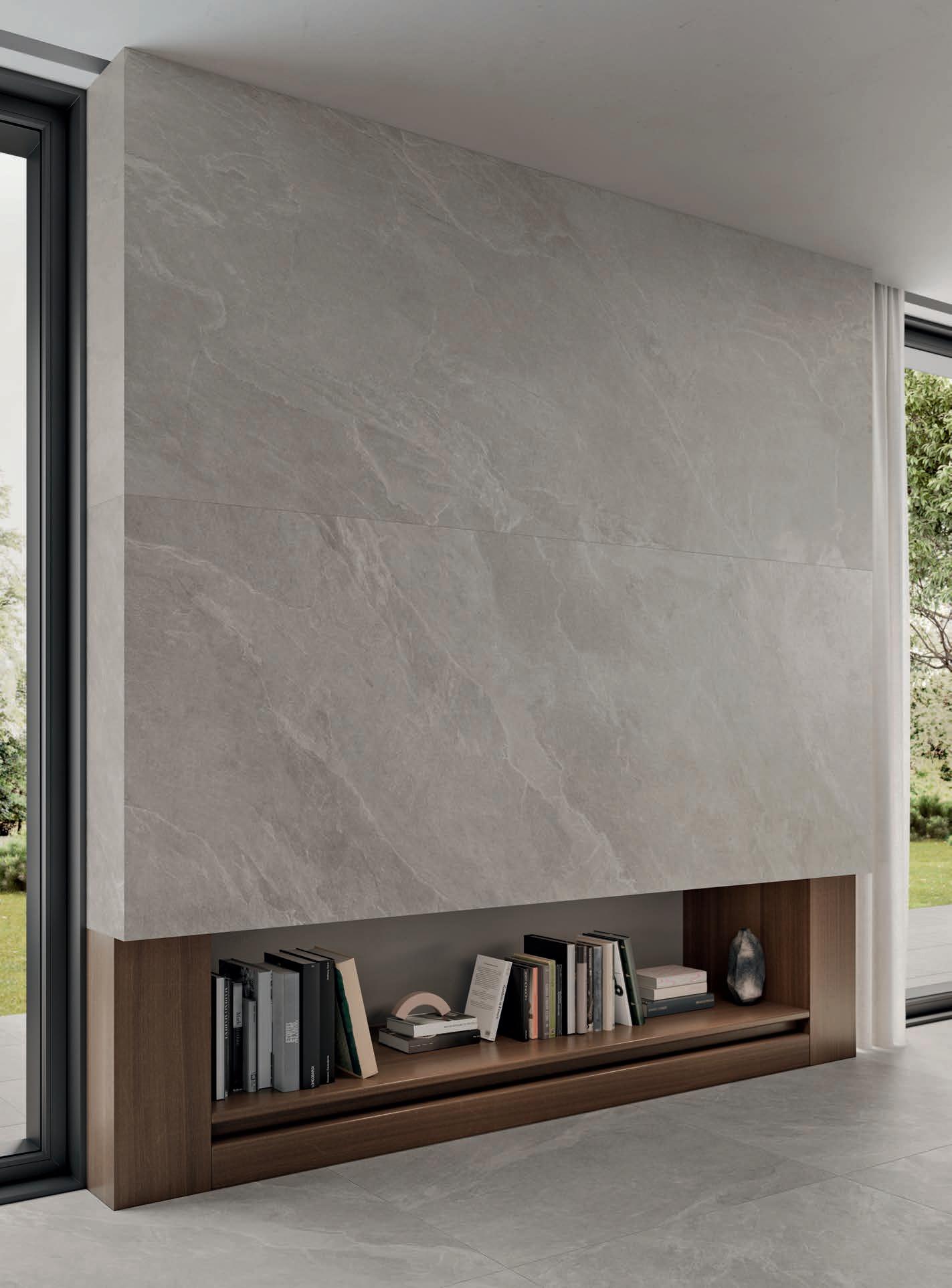 We treasure the veracity of all that is beautiful and original. The new large size of the Stone Trace collection expands the perception of continuity of the surfaces covering rooms like a second skin. It is perfectly tailored to the height of the walls, with no cuts and or inserts for maximum visual comfort for a daily schedule that alternates between work and relaxation. Thanks to the thickness of the slabs, it has been easy for us to renovate many areas in our home, without any demolition work, just simply by overlaying them on the existing floor and wall coverings, with a significant cost savings and more time for ourselves.