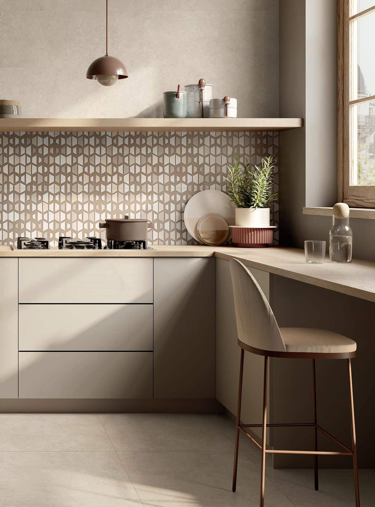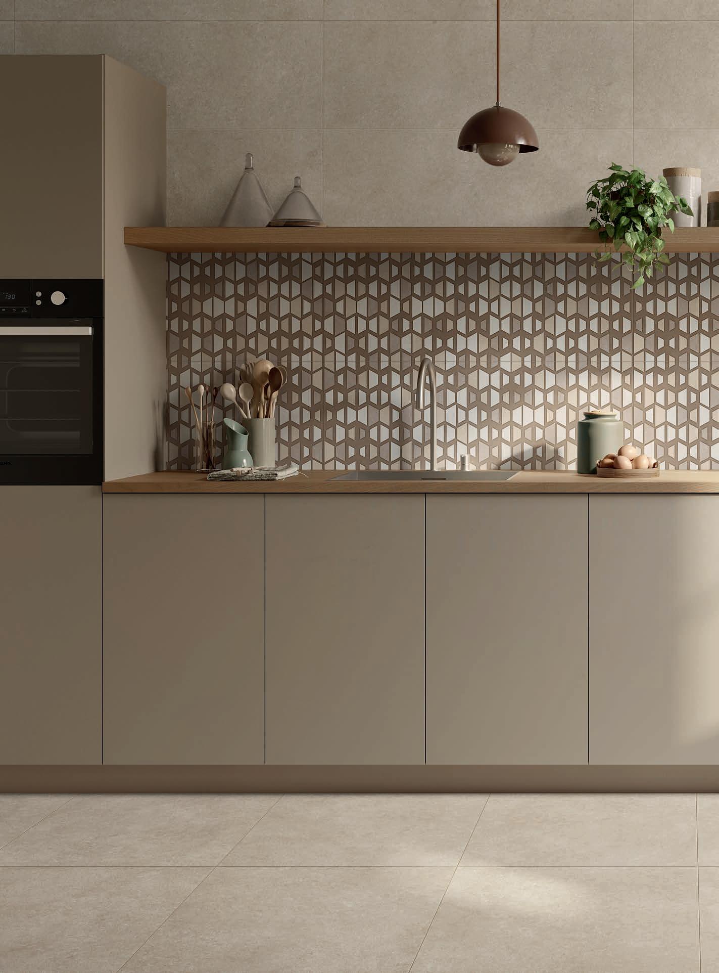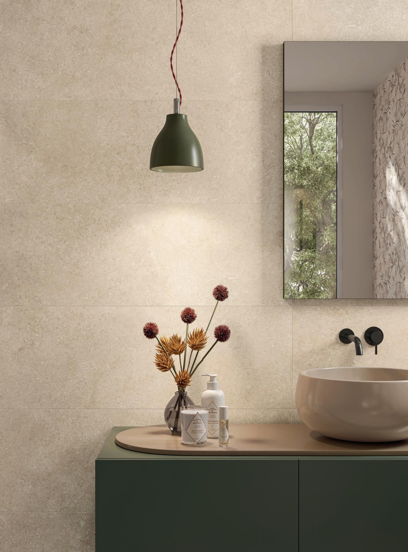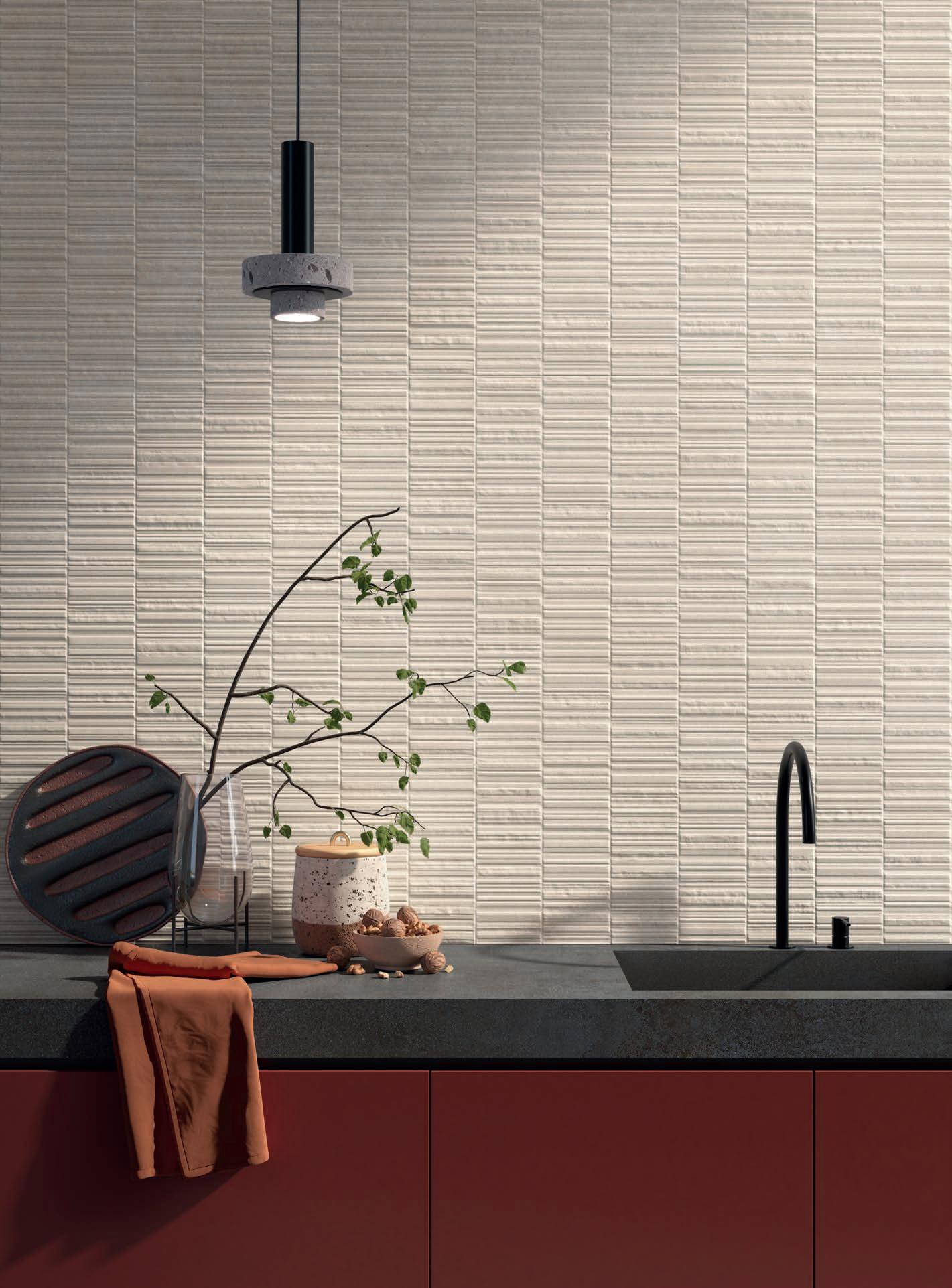 Una collezione contemporanea dal look rassicurante e confortevole, anche grazie alla leggera texture effetto pietra e ai toni soft, freschi e naturali, alternati ad accenti di colore.