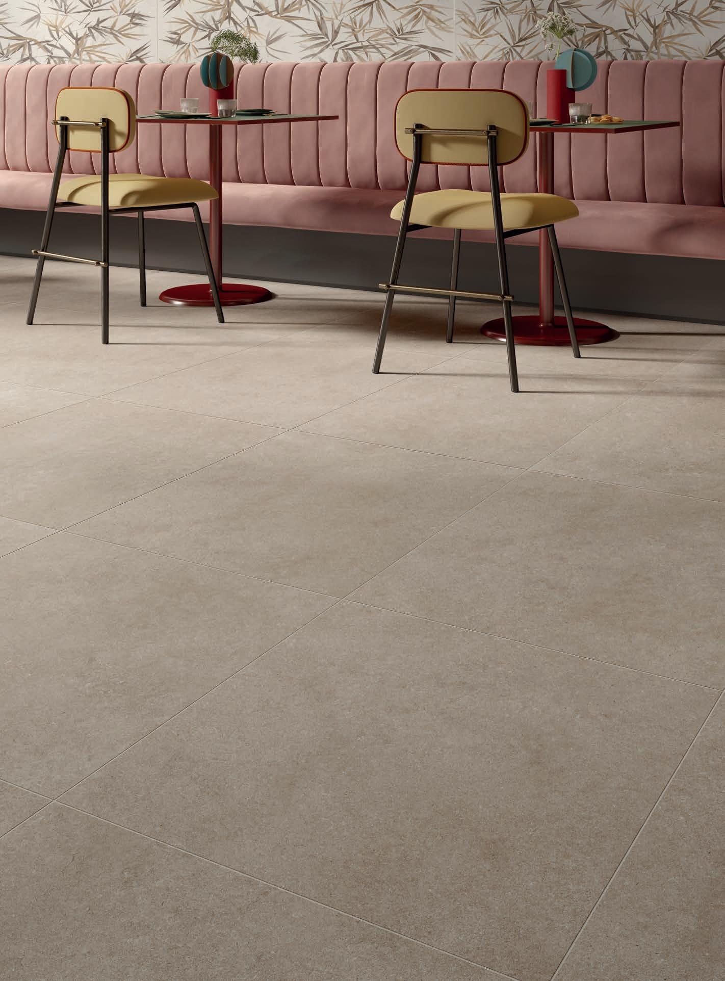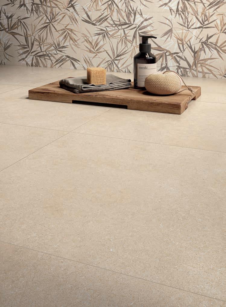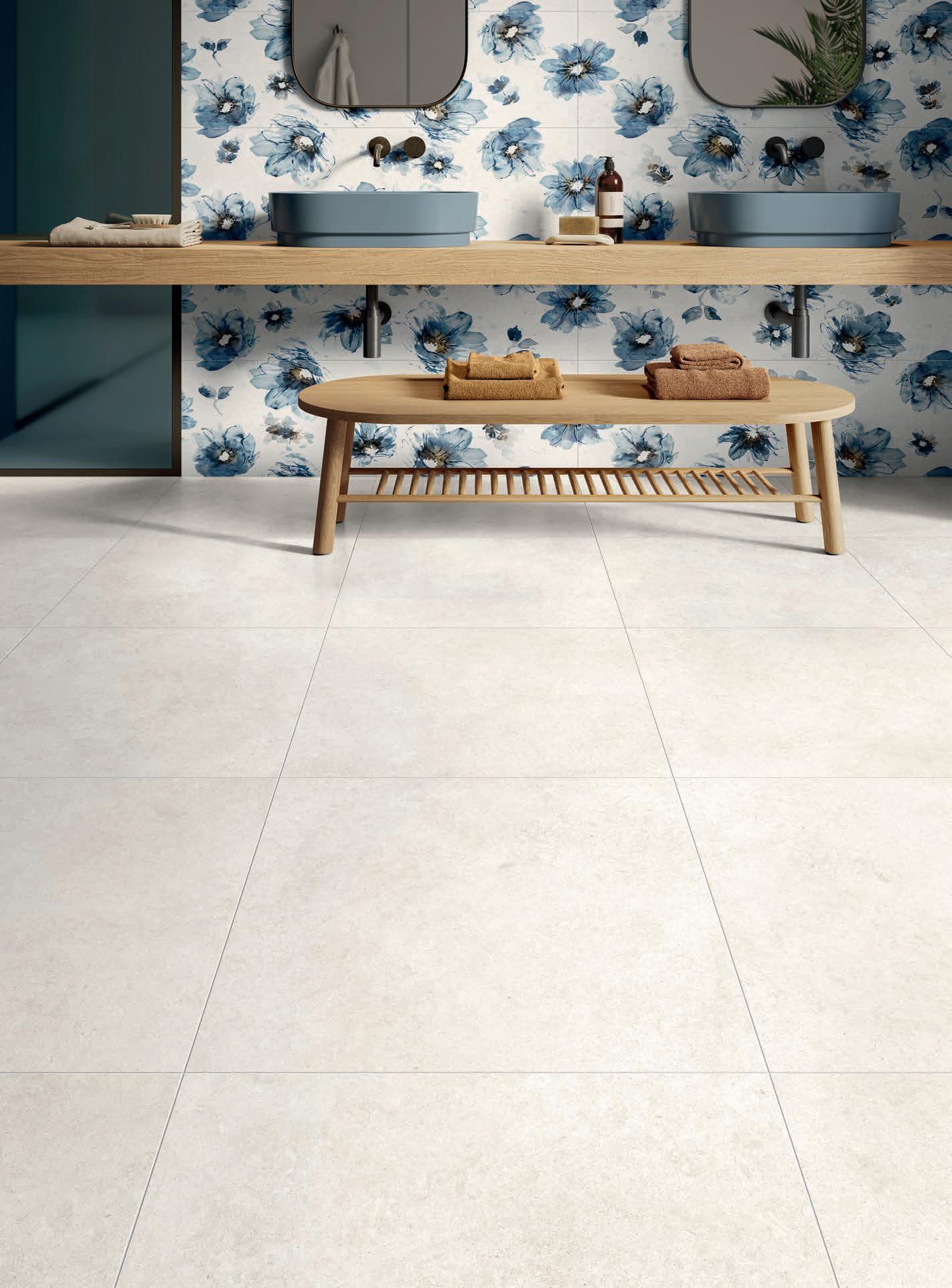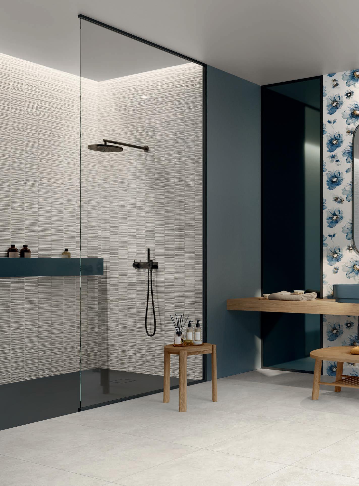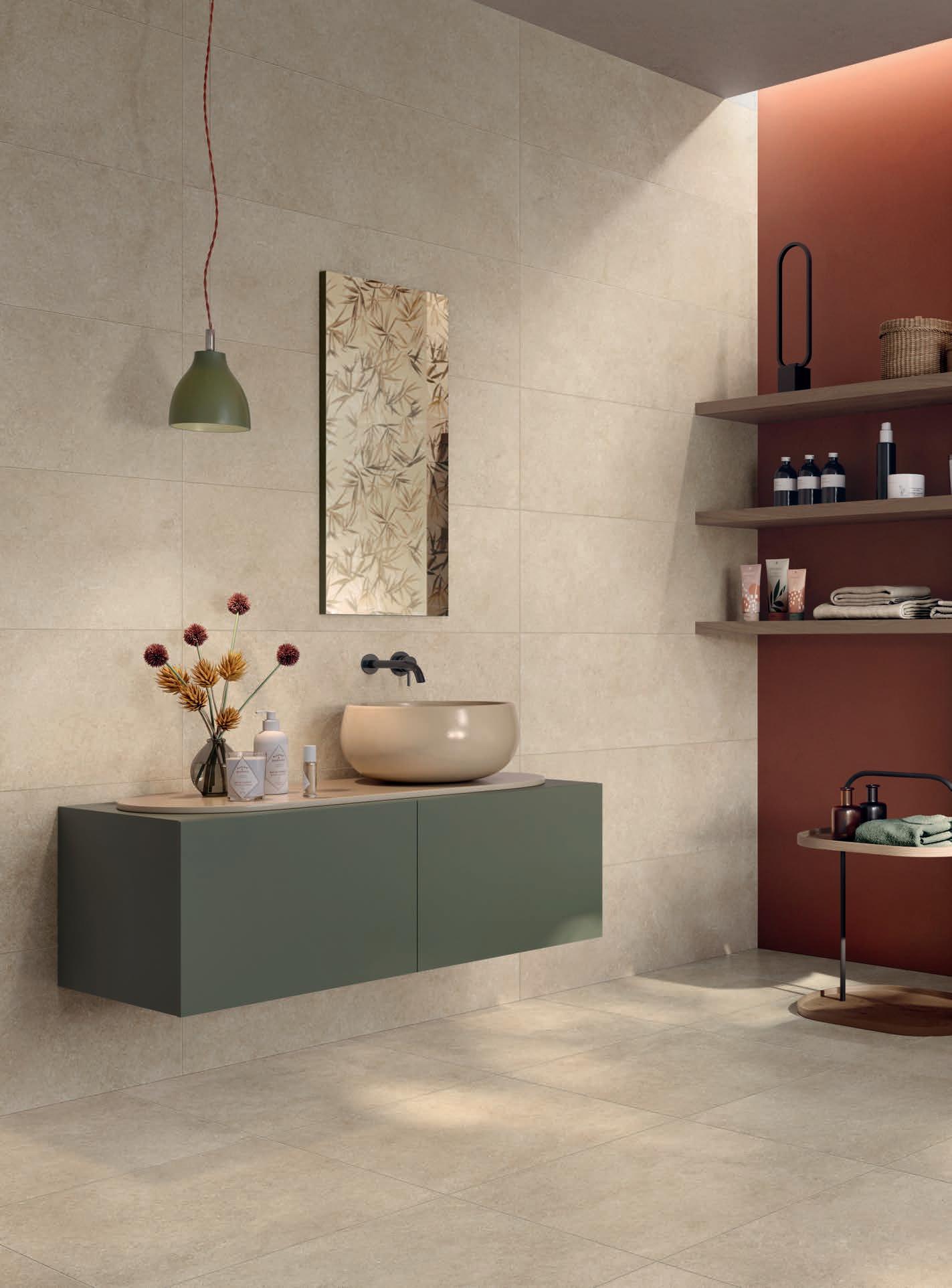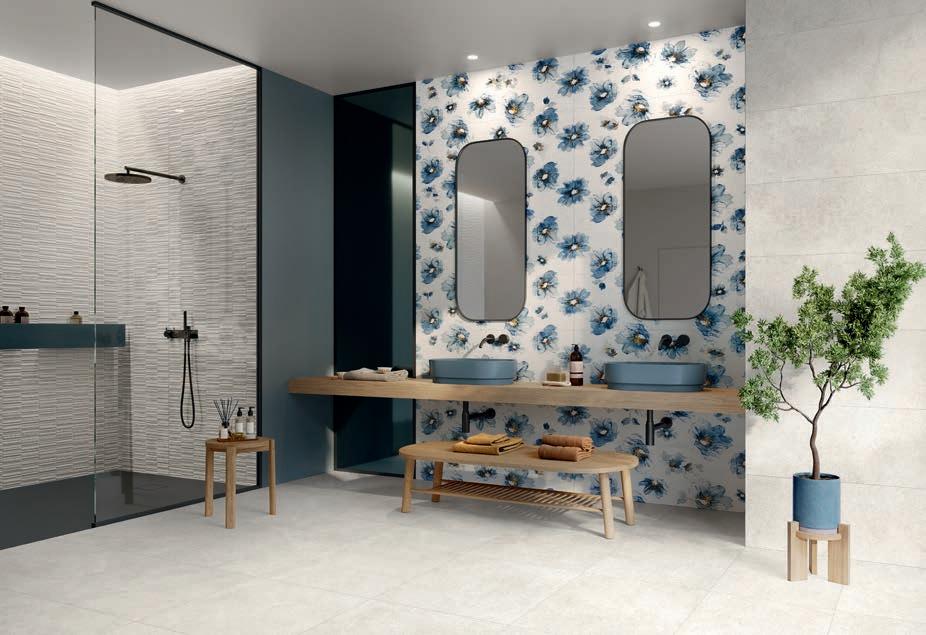 Superfici abbinabili grazie alla continuità cromatica tra pavimento e rivestimento