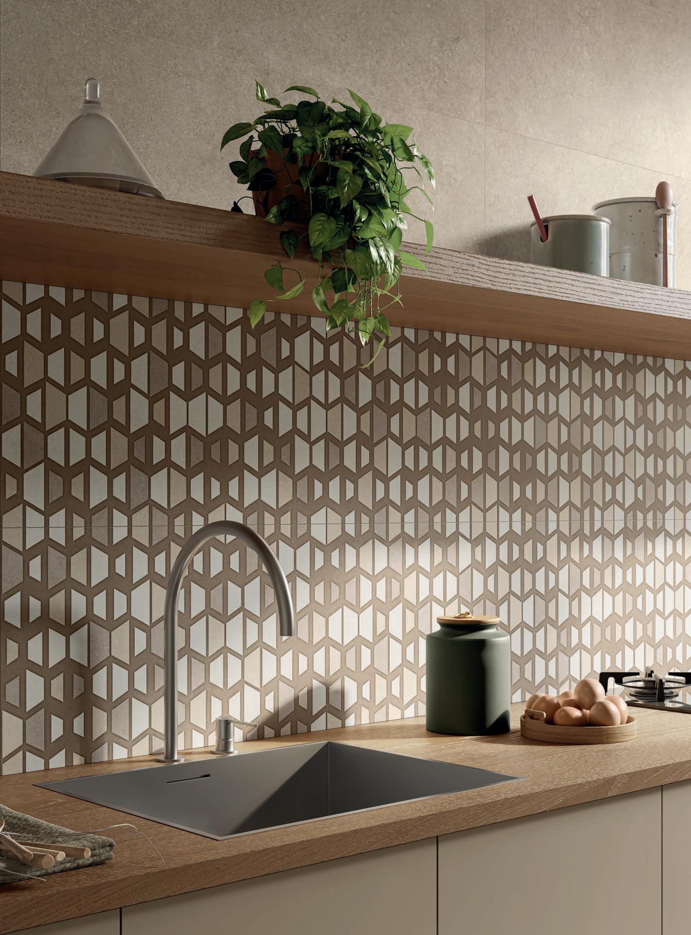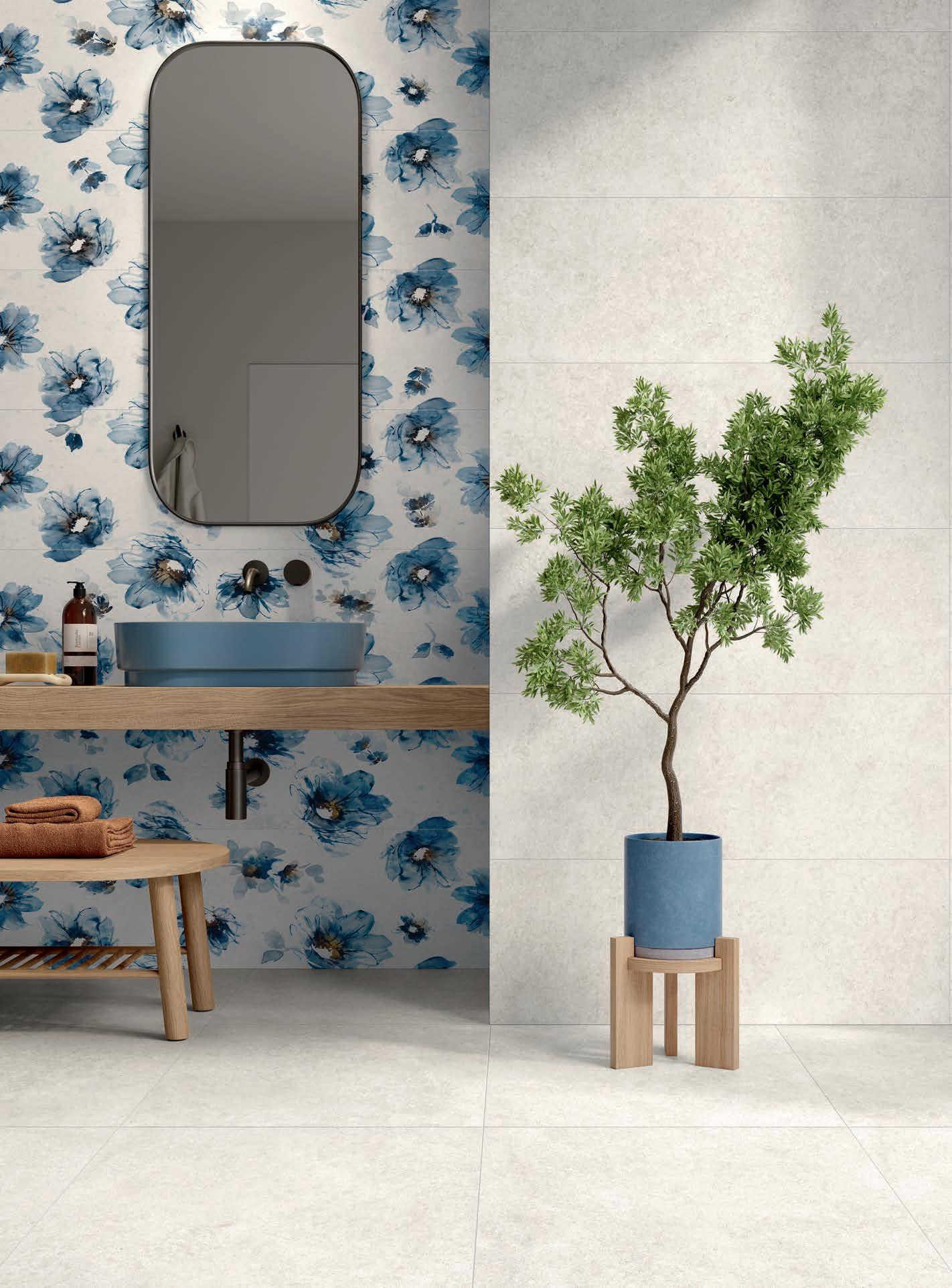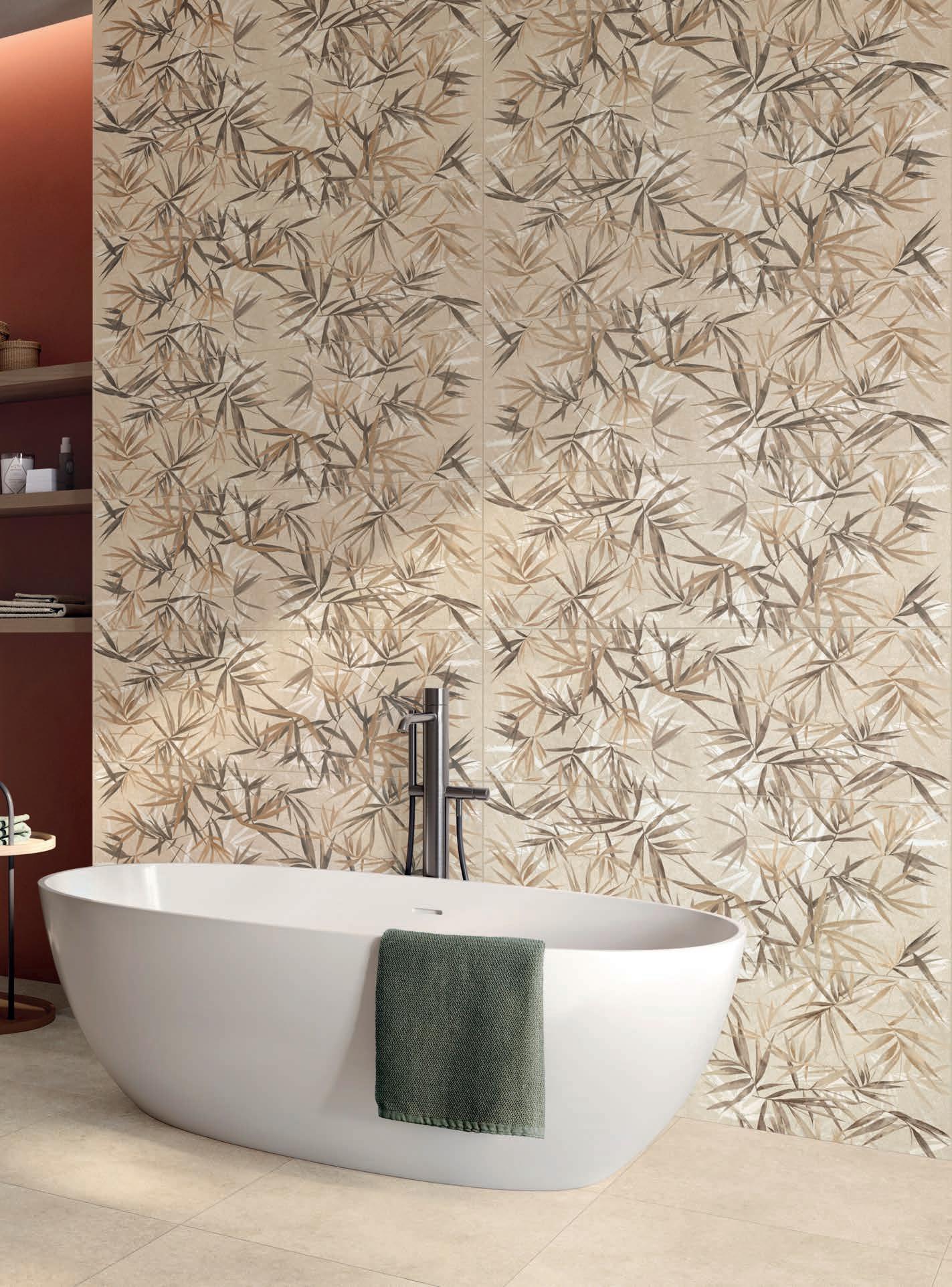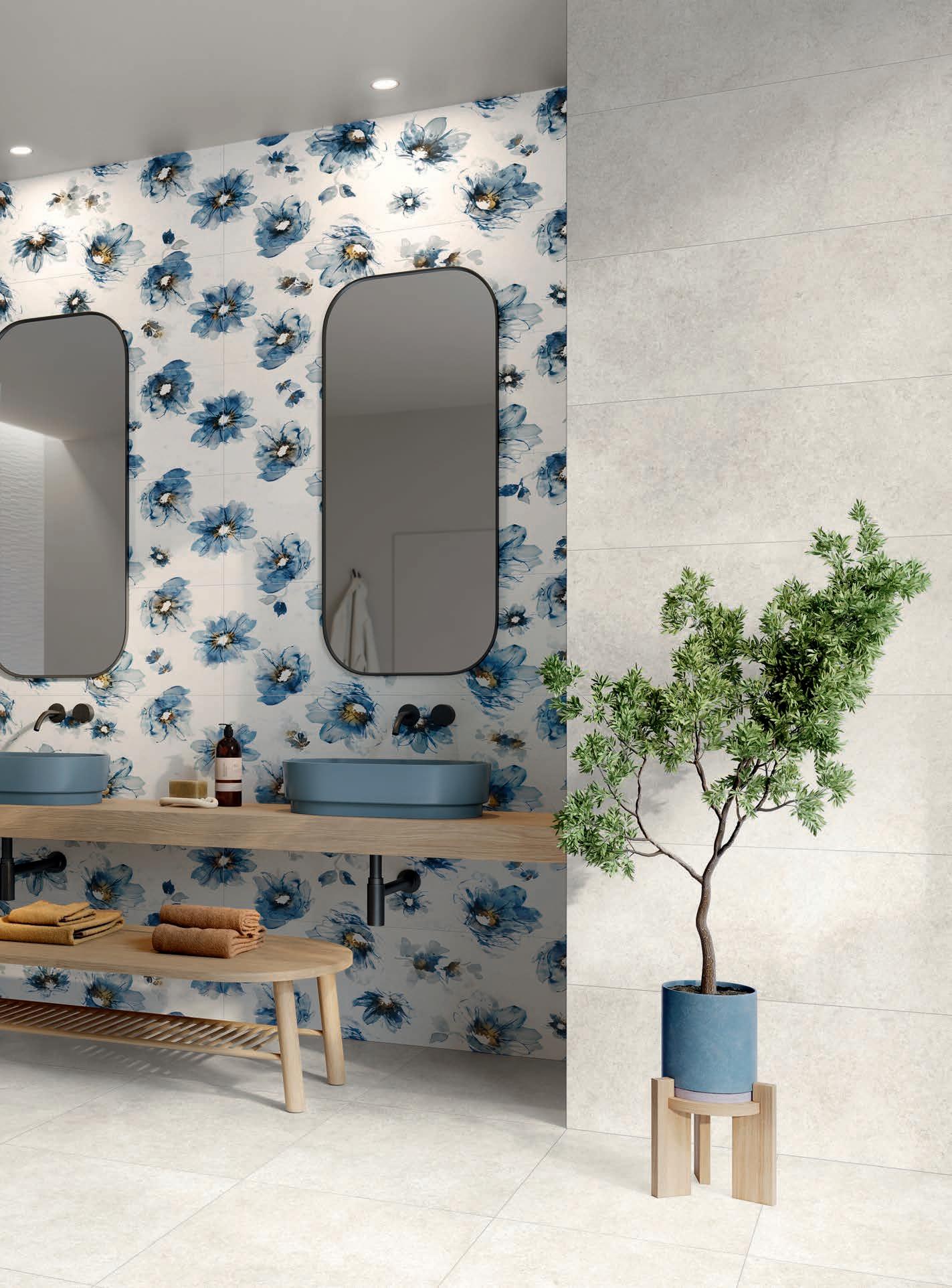 Le tinte dei fondi e le palette cromatiche dei decori risultano facili da abbinare con molti prodotti del catalogo Panaria.
