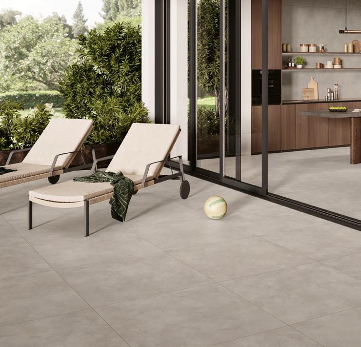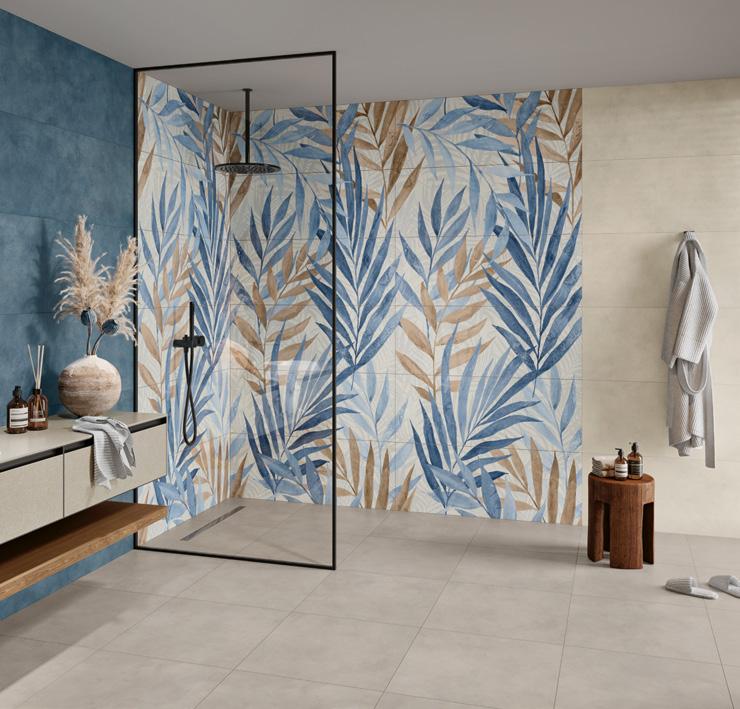 „Habitat“ verwandelt Räume in lebendige Oasen, in denen harmonische Farben und natürliche Dekore eine beruhigende Atmosphäre schaffen. Die Kombination aus warmen Sandtönen und sanften Blau- und GrünNuancen lädt ein, die Natur in ihrer geheimnisvollen Schönheit zu erleben, während die großformatigen Wandfliesen und das elegante Feinsteinzeug architektonische Visionen eindrucksvoll zur Geltung bringen. Mit „Habitat“ gelingt der fließende Übergang zwischen Innen- und Außenbereichen, der zeitgemäße Raumkonzepte harmonisch vereint.