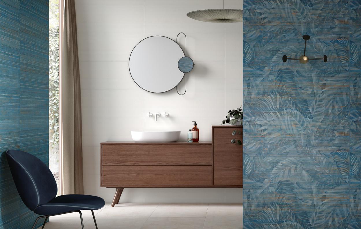 ‘Habitat’ transforms rooms into lively oases in which harmonious colours and natural decors create a calming atmosphere. The combination of warm sand tones and soft shades of blue and green invites you to experience nature in all its mysterious beauty, while the large-format wall tiles and elegant porcelain stoneware impressively emphasise architectural visions. Habitat’ creates a smooth transition between indoor and outdoor areas, harmoniously combining contemporary room concepts.