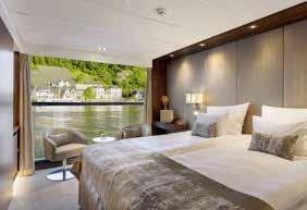 • Alojamiento de lujo en un camarote exterior con vistas al río, según la categoría elegida: