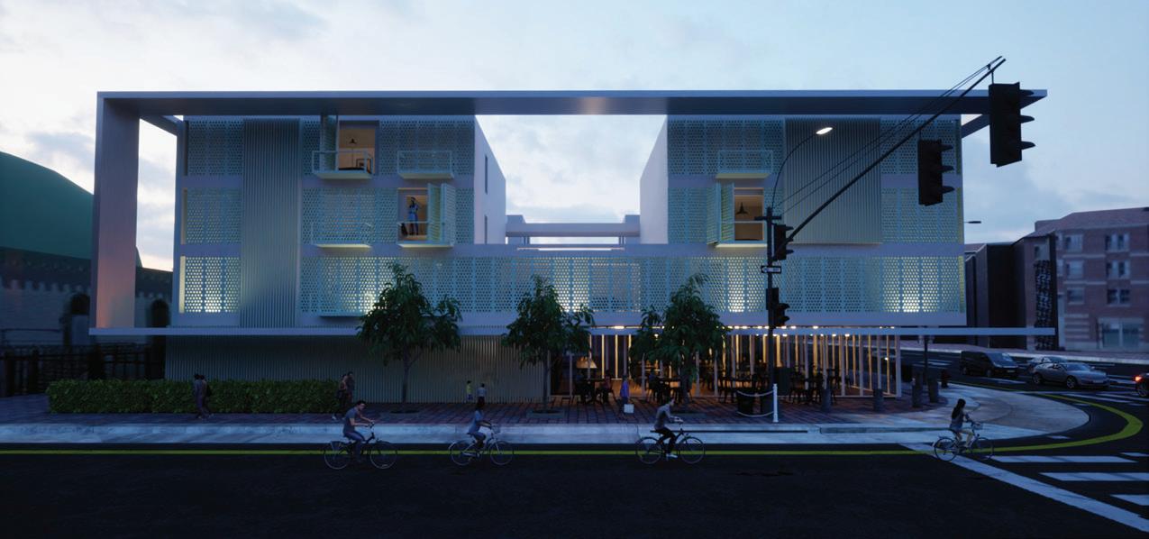 When designing the Co-op housing project at the intersection of Vermont and Exposition Avenue, I focused on creating a more interactive connection between public and private spaces. Key features include a widened sidewalk for social activities like cafes and outdoor study spaces, operable doors that open courtyards to the public during the day, and a communal kitchen to encourage student interaction. The building’s layout maximizes housing while incorporating double-helix circulation to seamlessly integrate social and private spaces across multiple floors.