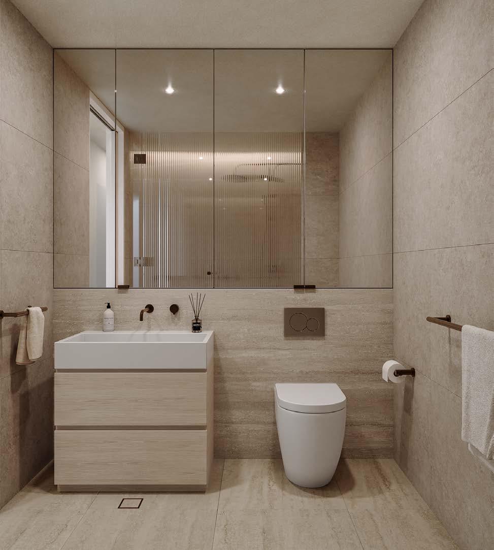 DISCLAIMER: All pictures, plans and other visual representations are indicative only. Dimensions, floor areas, fittings, specifications, tiling, paving and floor finishes, landscape and paved areas are indicative only and subject to change without notice. The development is not completed and so the final product may differ from that depicted in this document. Views depicted will not be available from all apartments and may be impacted by future surrounding development. Furnishings not included. Buyers should refer to and rely on the disclosure document and the plans forming part of the contract. Statements made are true to the best of the Seller’s knowledge. Neither the Seller nor its officers, employees or agents accepts any liability for the accuracy or completeness of the information in this document. Interested persons should make and rely on their own investigations and advice and refer to the disclosure document and contract.