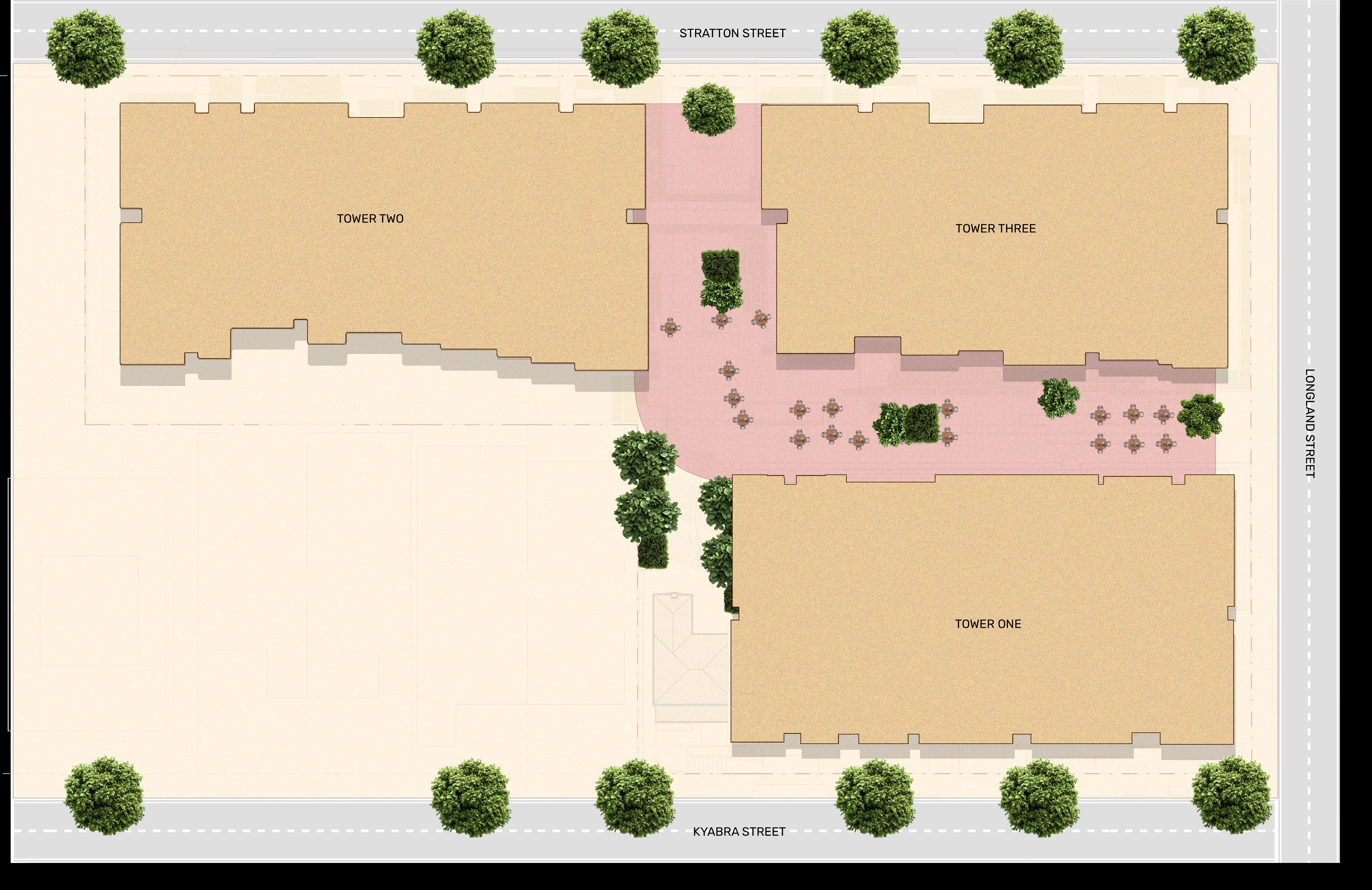 IMPORTANT NOTE: Tower two and three are indicative as to design and layout and are subject to redesign by the developer and further BCC approvals. Development to be progressively undertaken in stages. Plaza design and layout are subject to further design development.