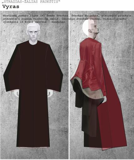 „Strazdas – žalias paukštis“ – mano pavasaris, neseniai pabaigusi didžiuosius pramoninius projektus dabar, kurdama kostiumus spektakliui, atsigaunu, – sako dizainerė. – Seniai jau buvau patyrusi tokį kūrybinį džiaugsmą, įvairiausių minčių srautą ir išsilaisvinimą. Dabar jaučiu, kad prisidedu prie kažko galingo, sunkiai apibūdinamo vyksmo. Pats procesas labai įdomus, nes man nepažįstamas. Atrodo, kiekvienas spektaklio kūrėjas veikia atskirai, bet ir kartu. Komanda susijungia mintimis ir jaučiu, kad visų darbų rezultatas materializuosis nauja, dar