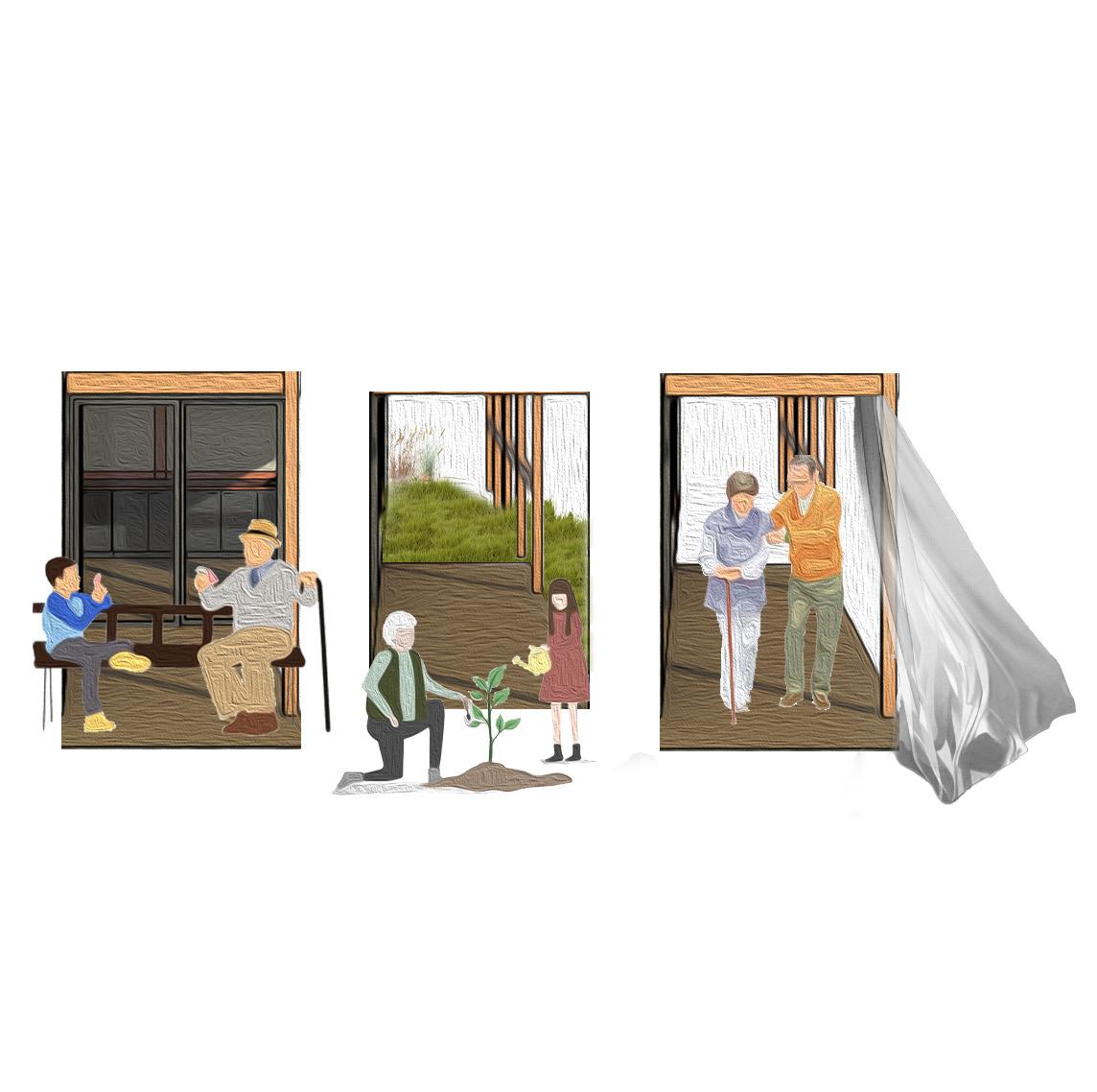 As an evolution diagram, the project also seeks to adapt an unoccupied unit by the elderlies into a rental unit with the change of time. A 3 years, 5 years, and 10 years plan is proposed. Built with light framing as an extension, the unit can be constructed within a short timeframe while keeping the cost low.