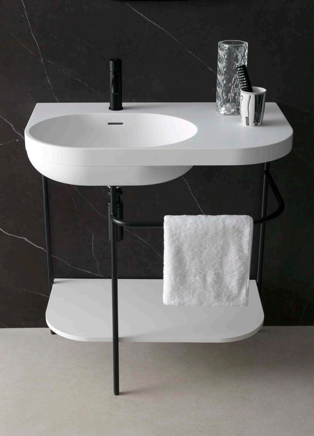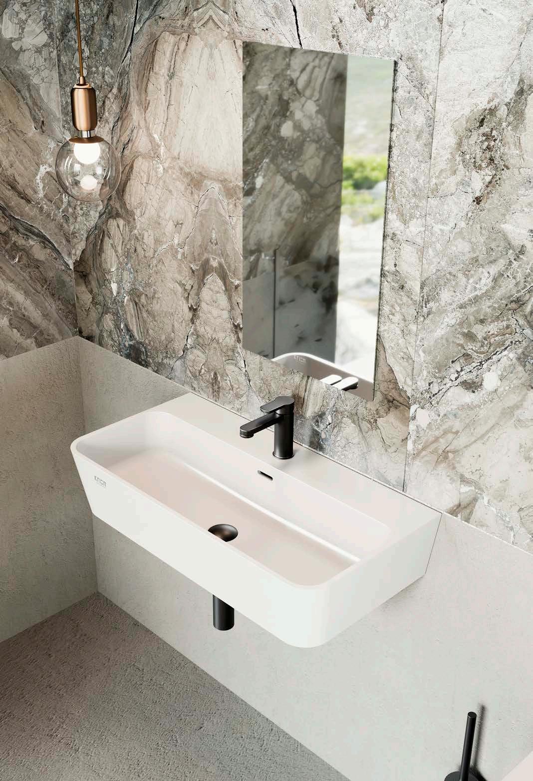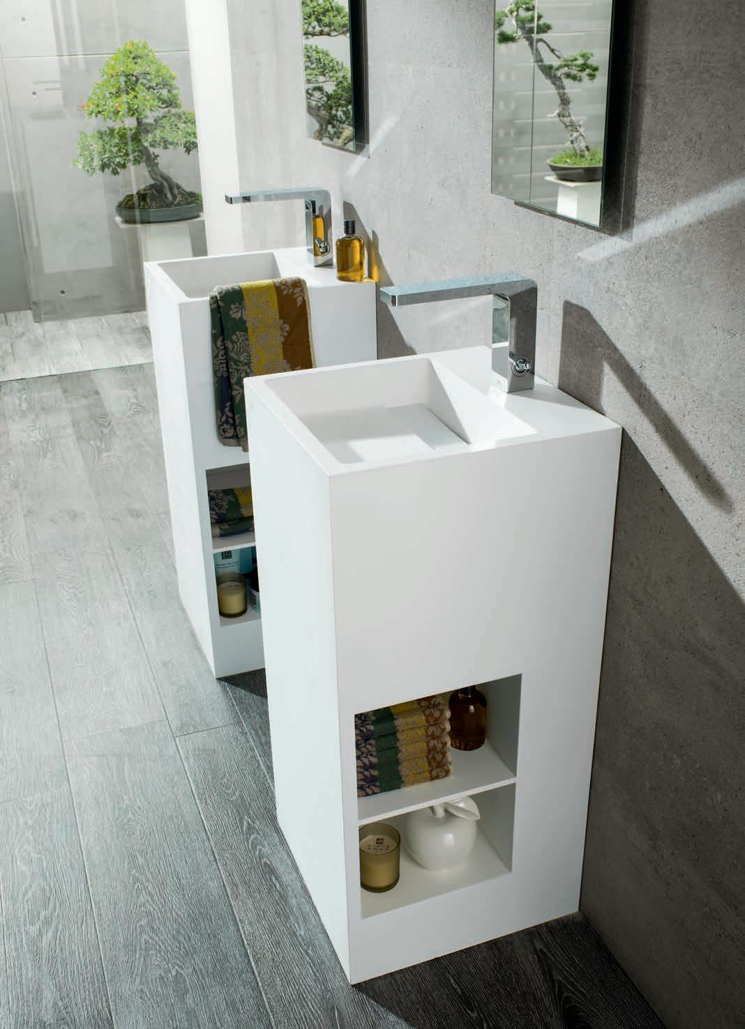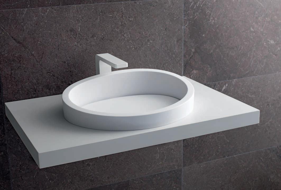 This KRION® series, in addition to a free-standing bathtub, washbasin and semi-recessed washbasin.