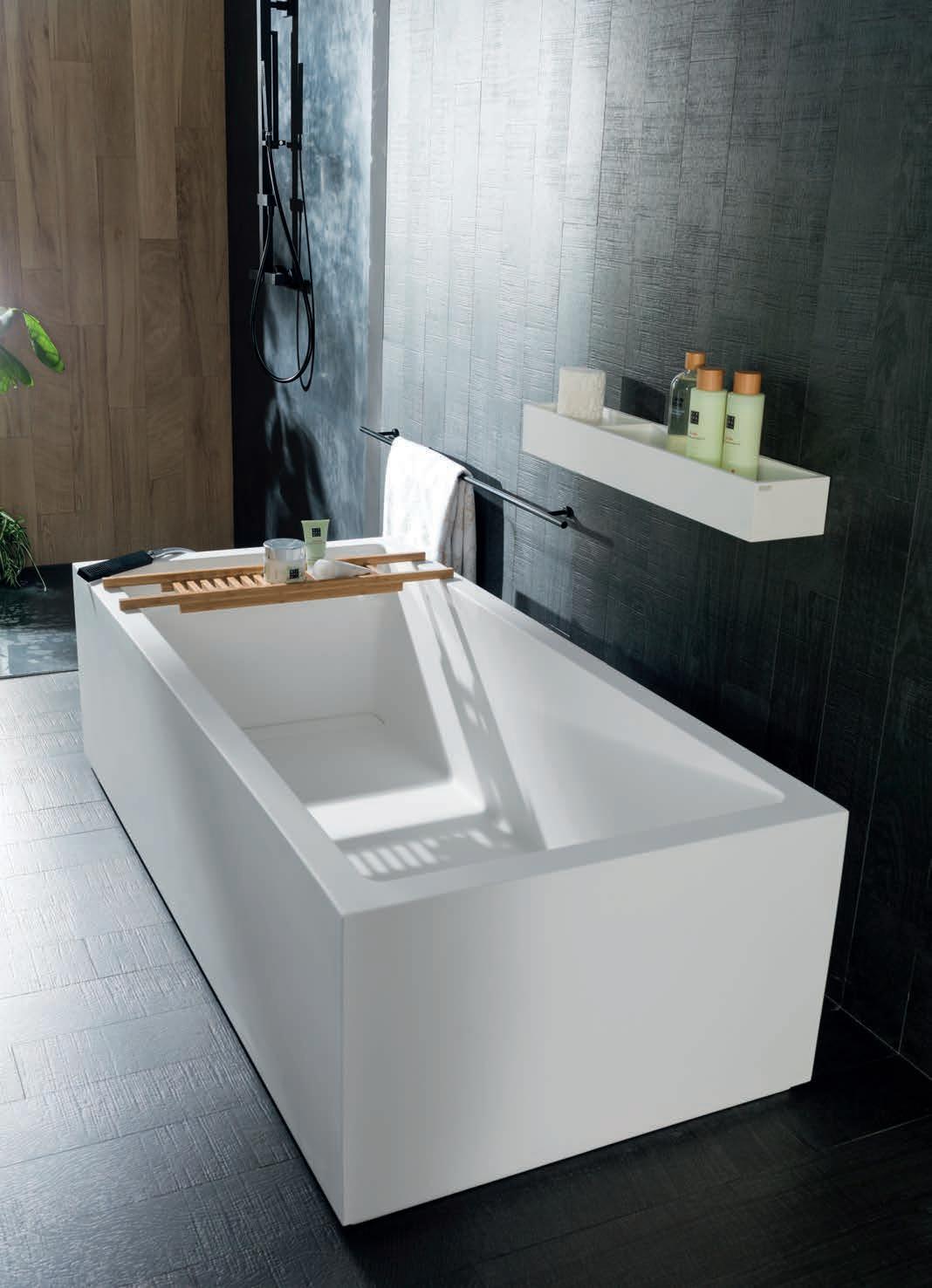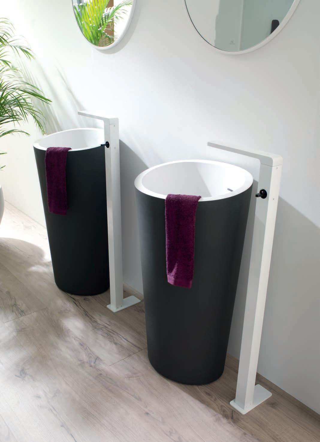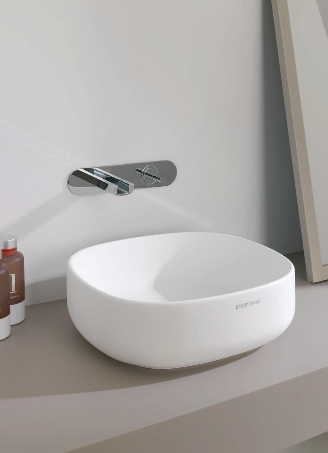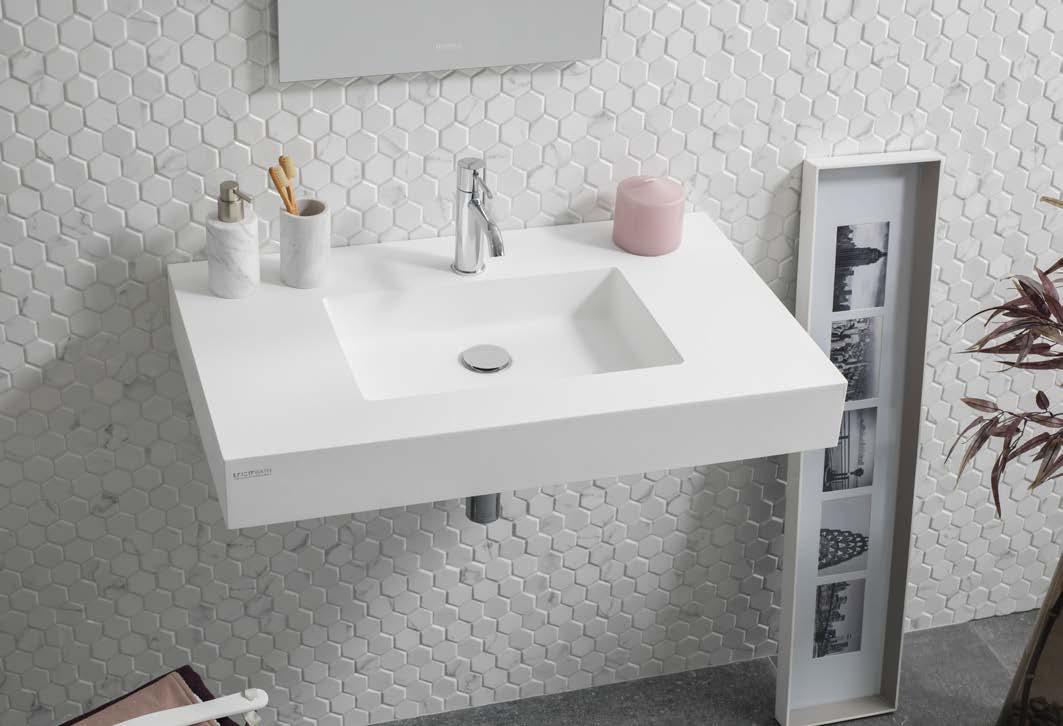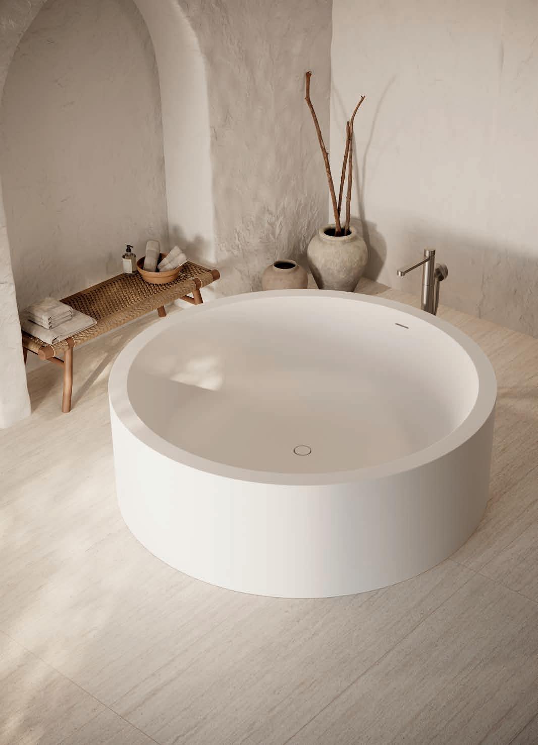 This KRION® series, in addition to a free-standing bathtub, washbasin and semi-recessed washbasin.