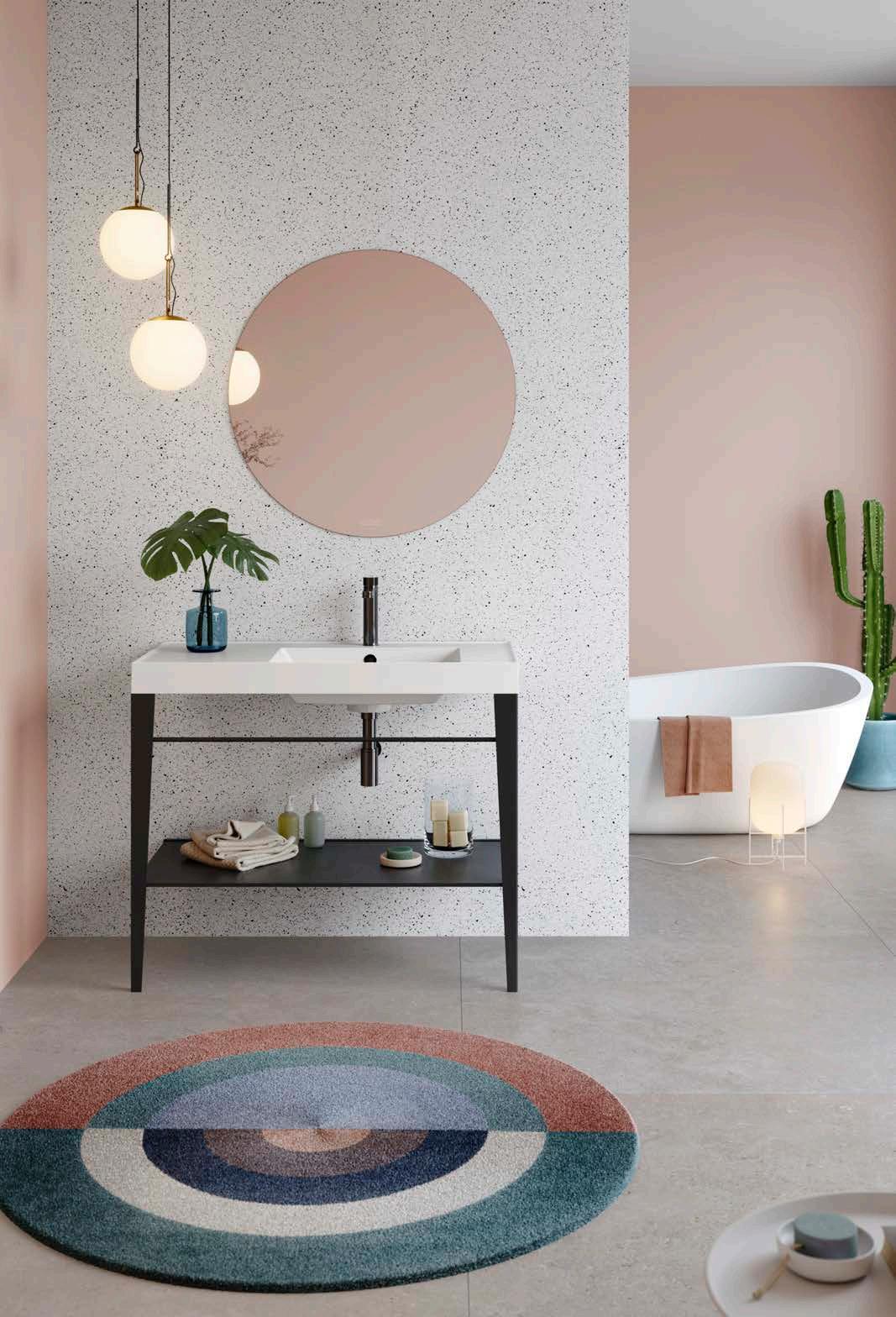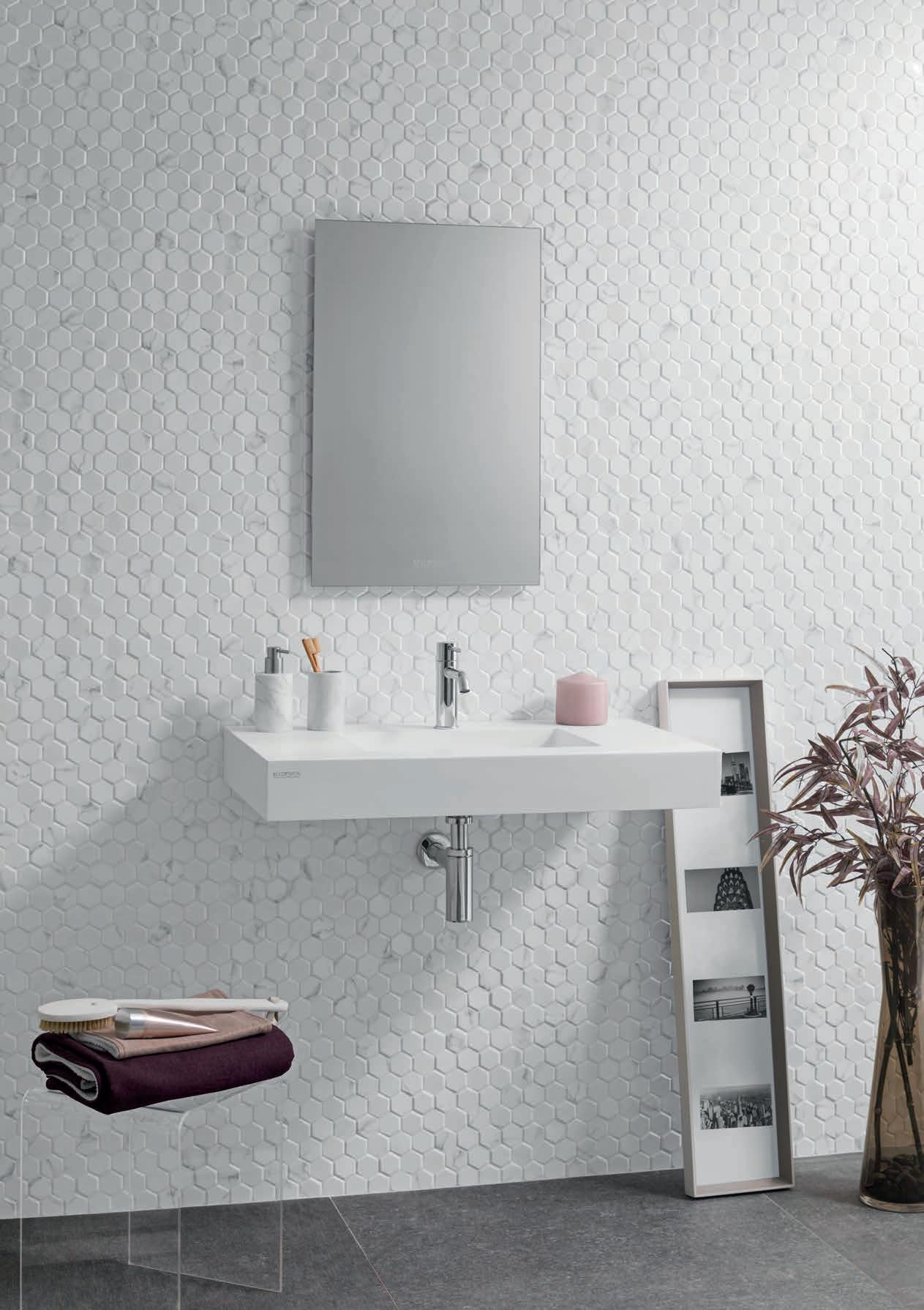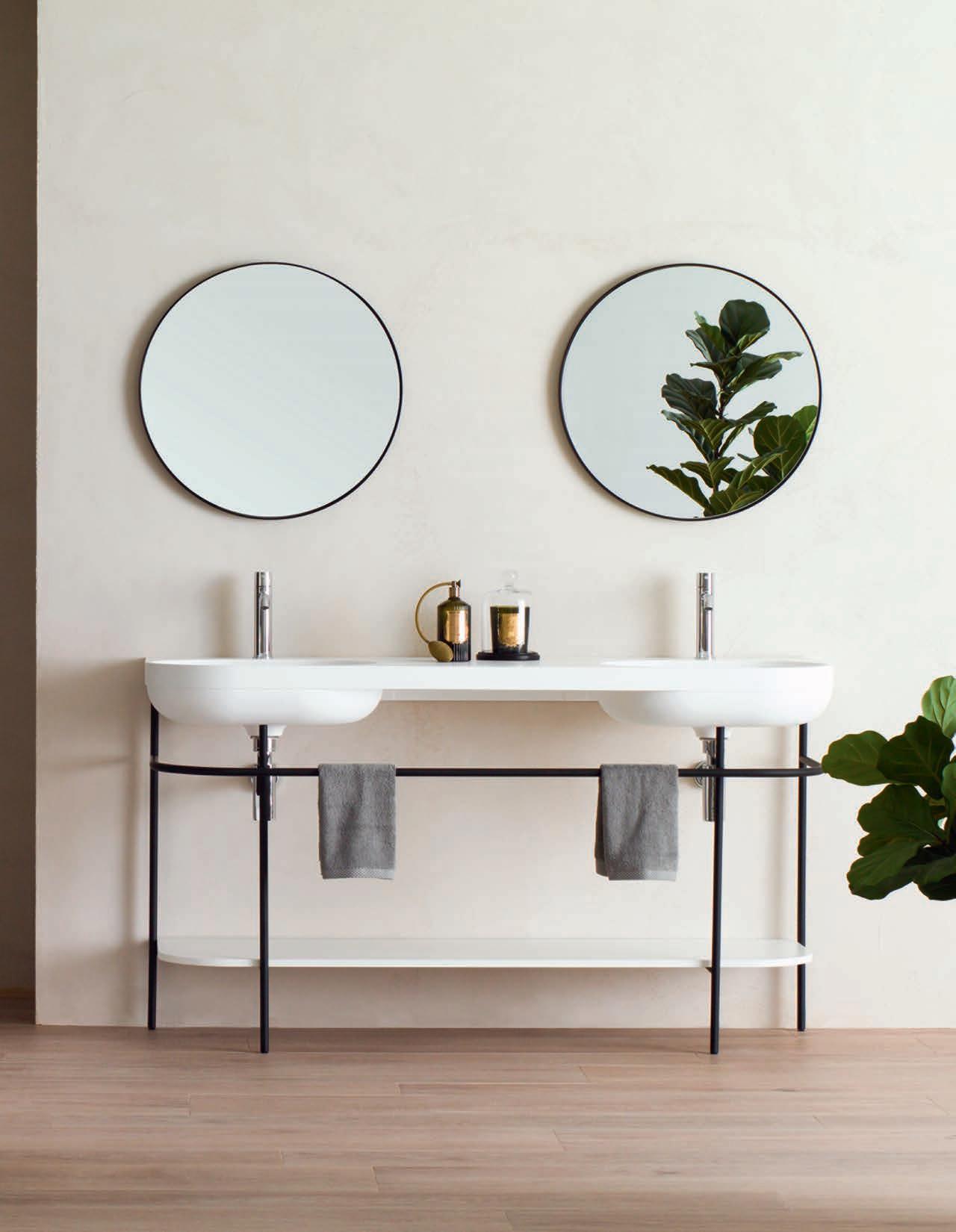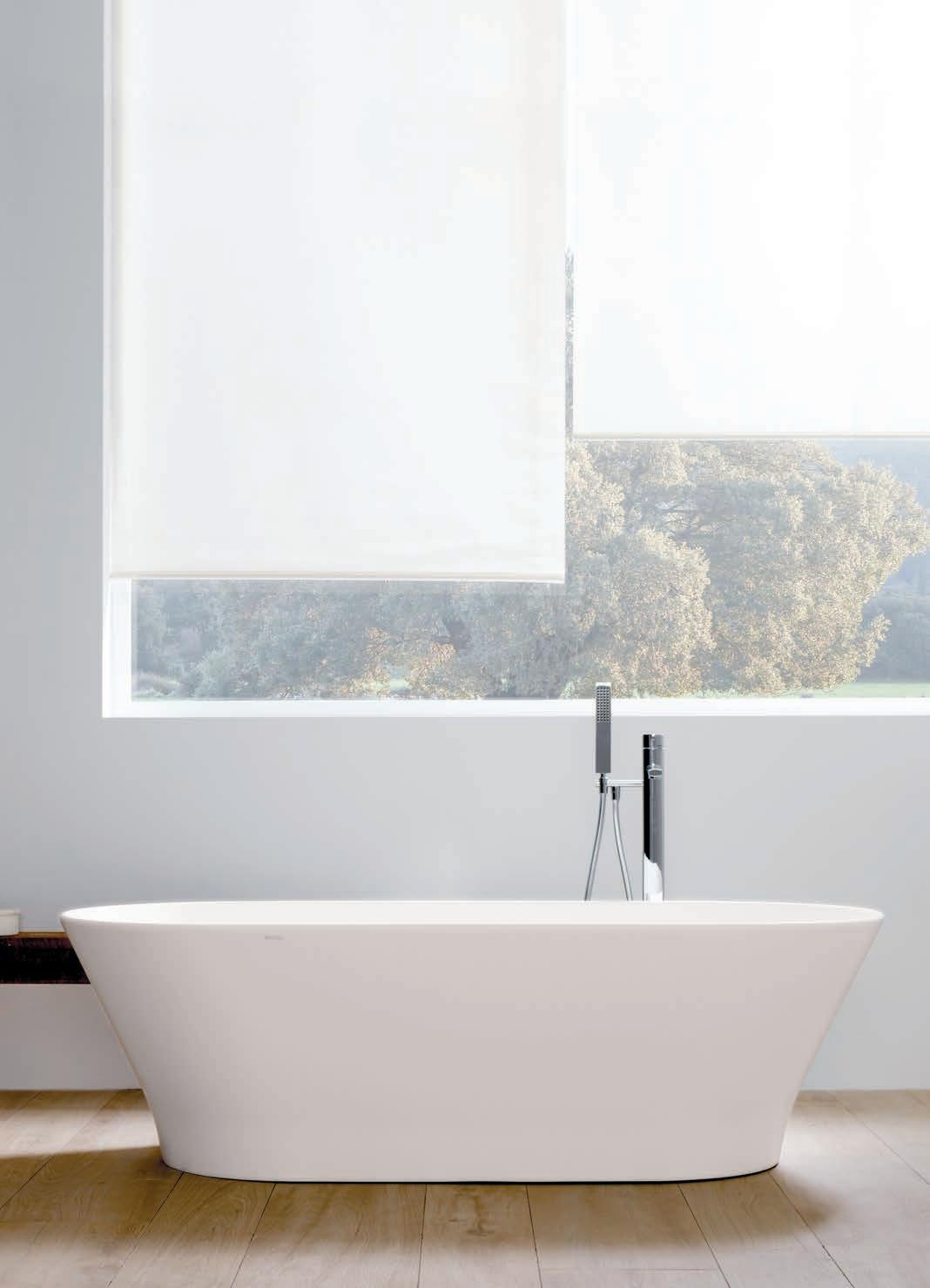 This KRION® series, in addition to a free-standing bathtub, washbasin and semi-recessed washbasin.